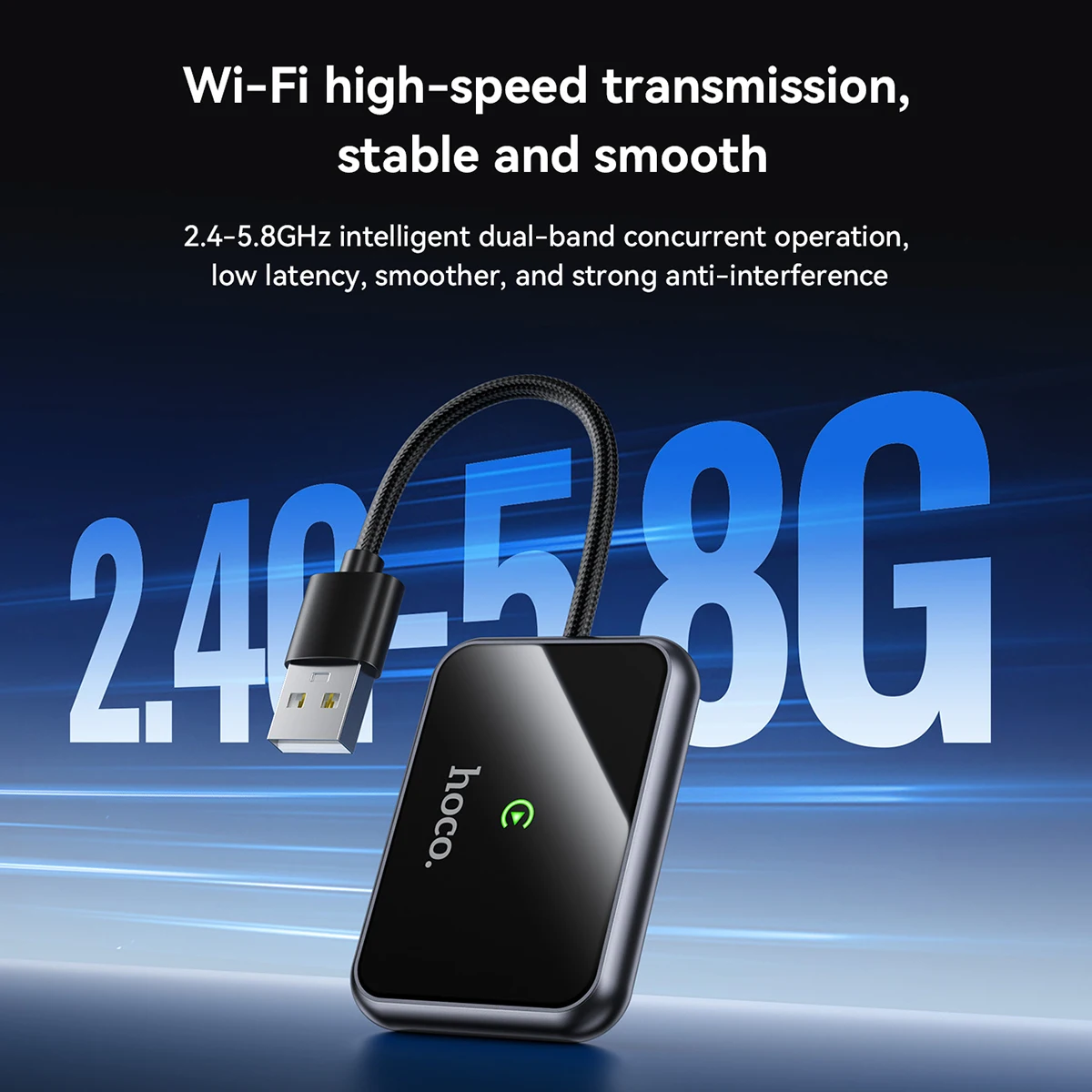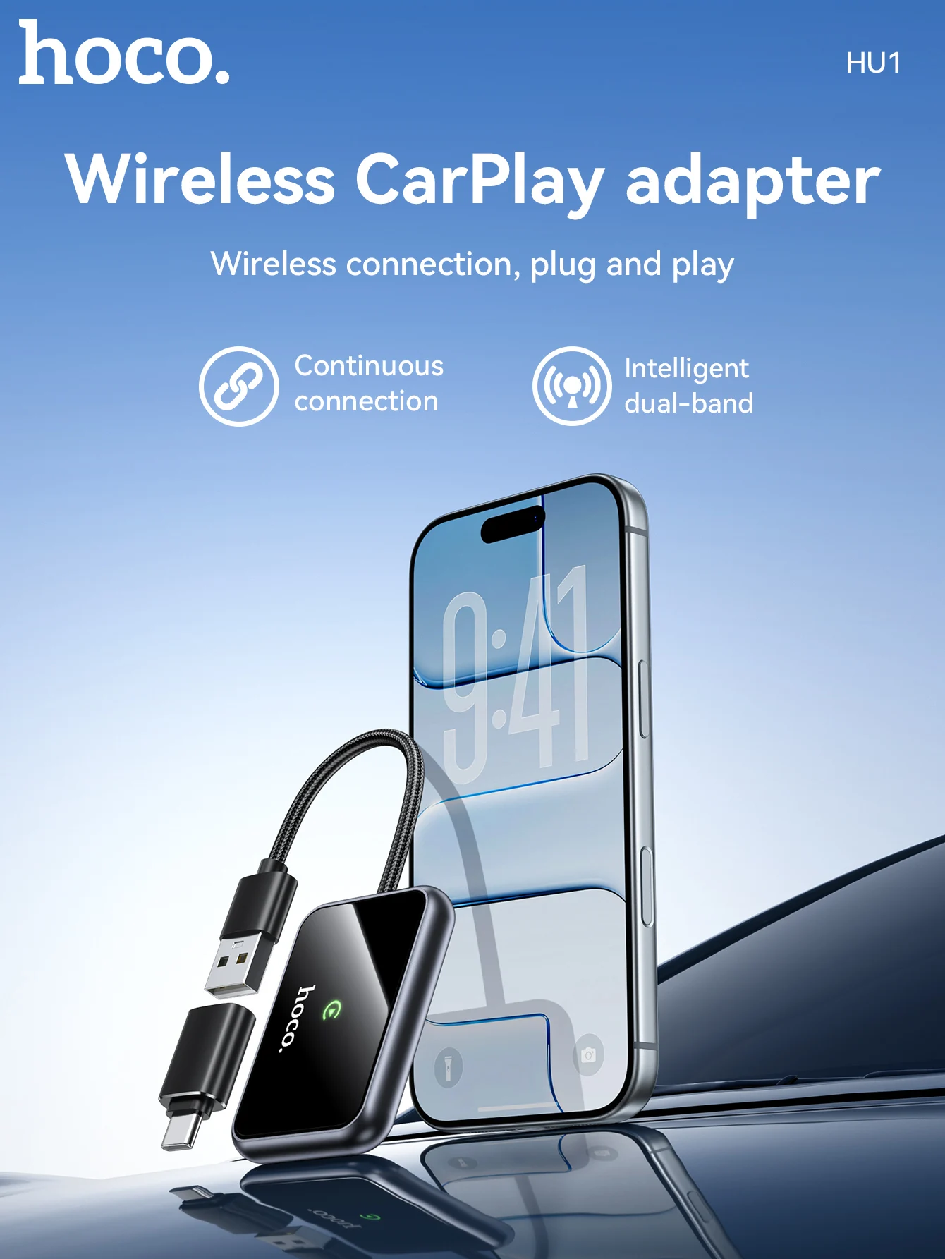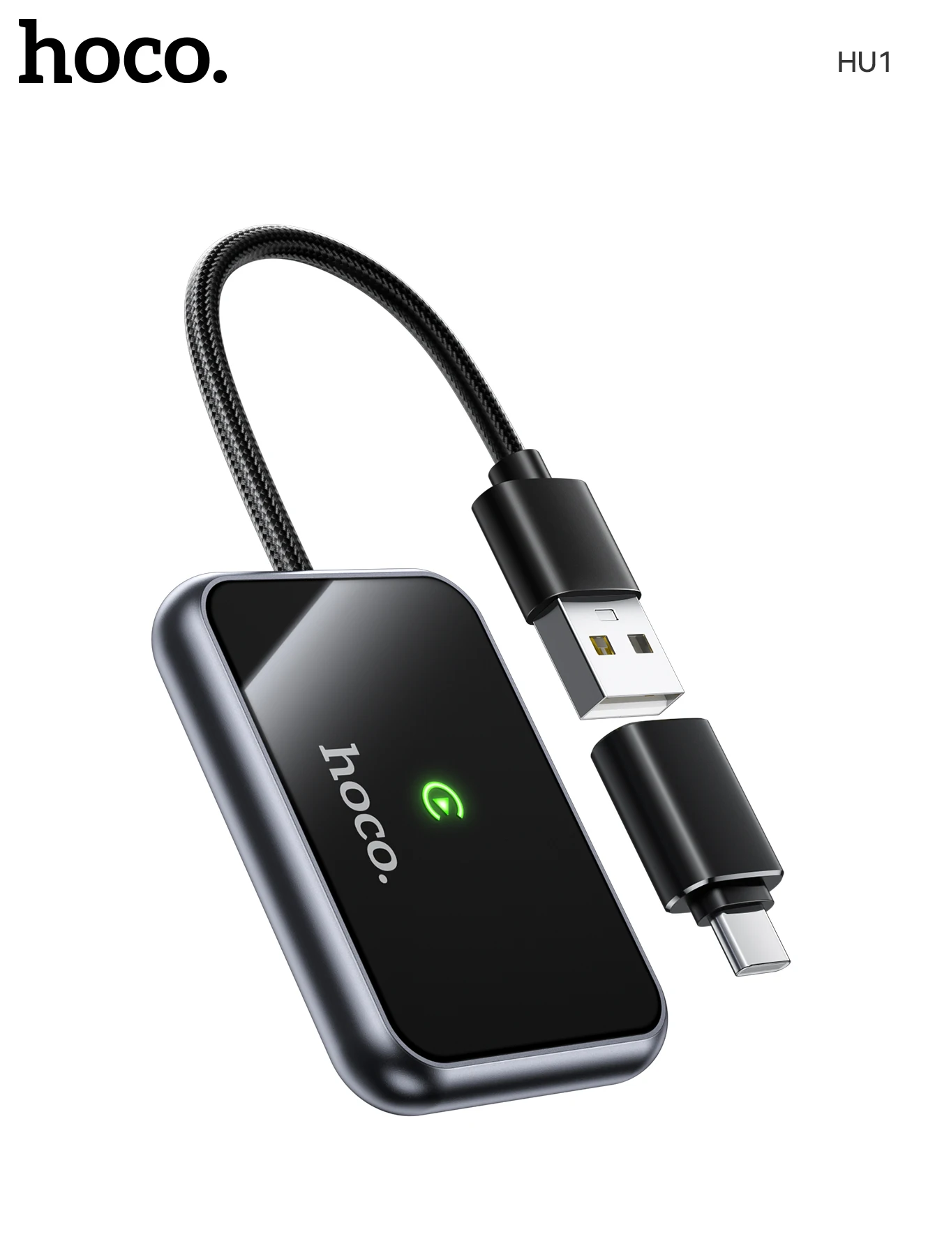 Adaptador HOCO HU1 CarPlay Sem Fio – Plug & Play USB/USB-C para iPhone