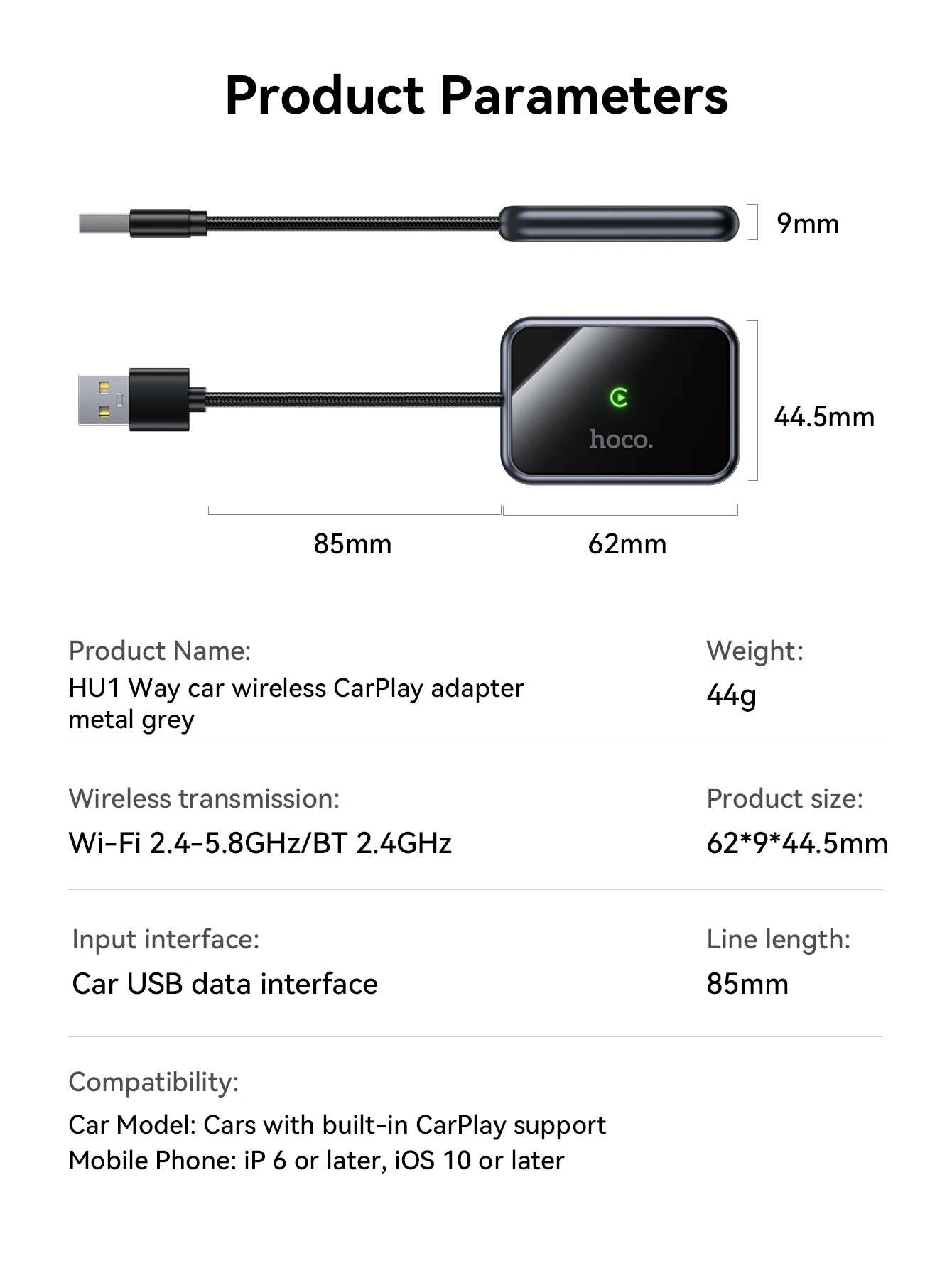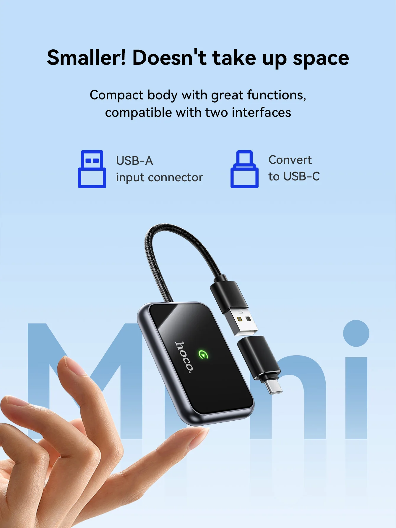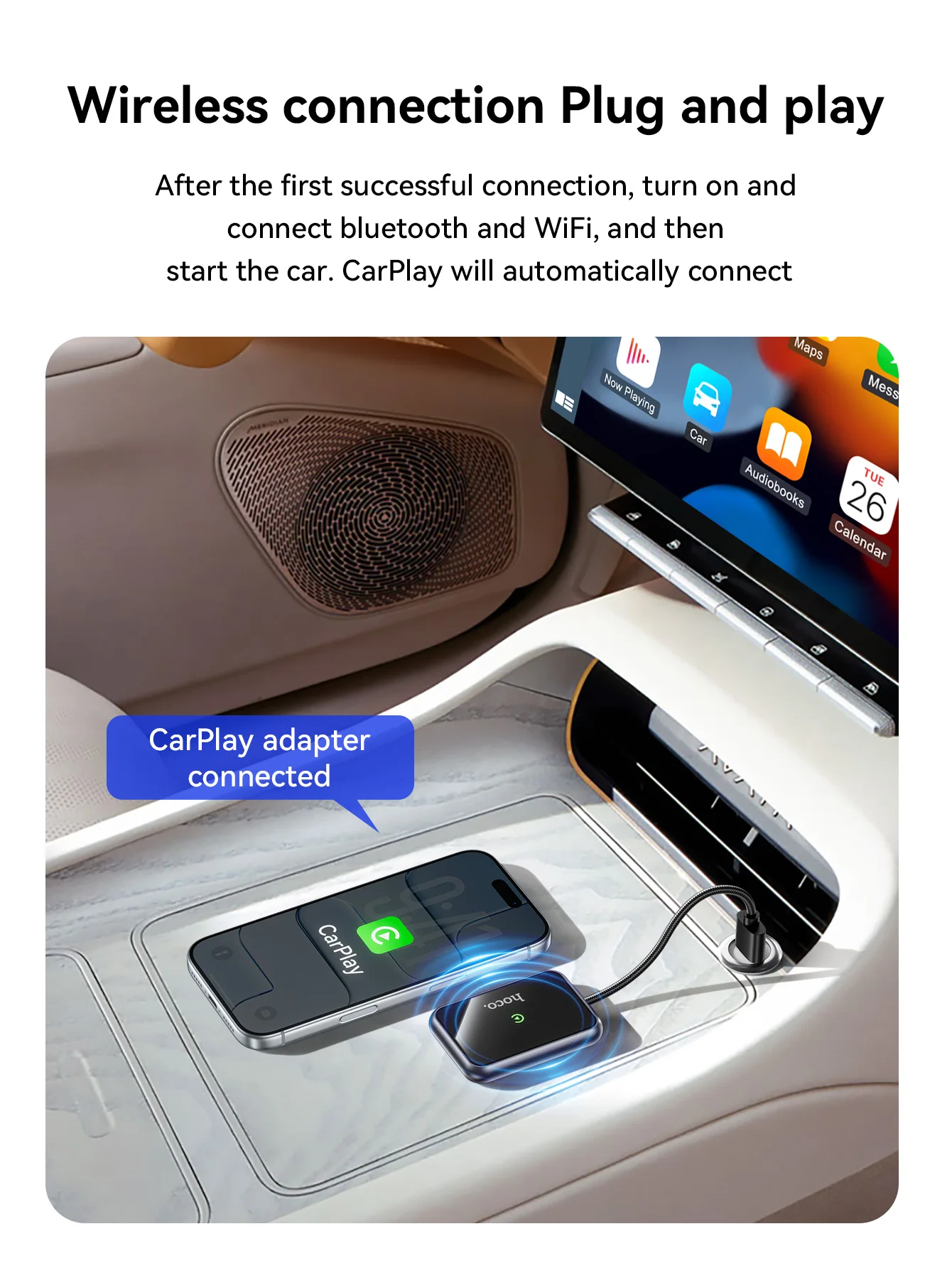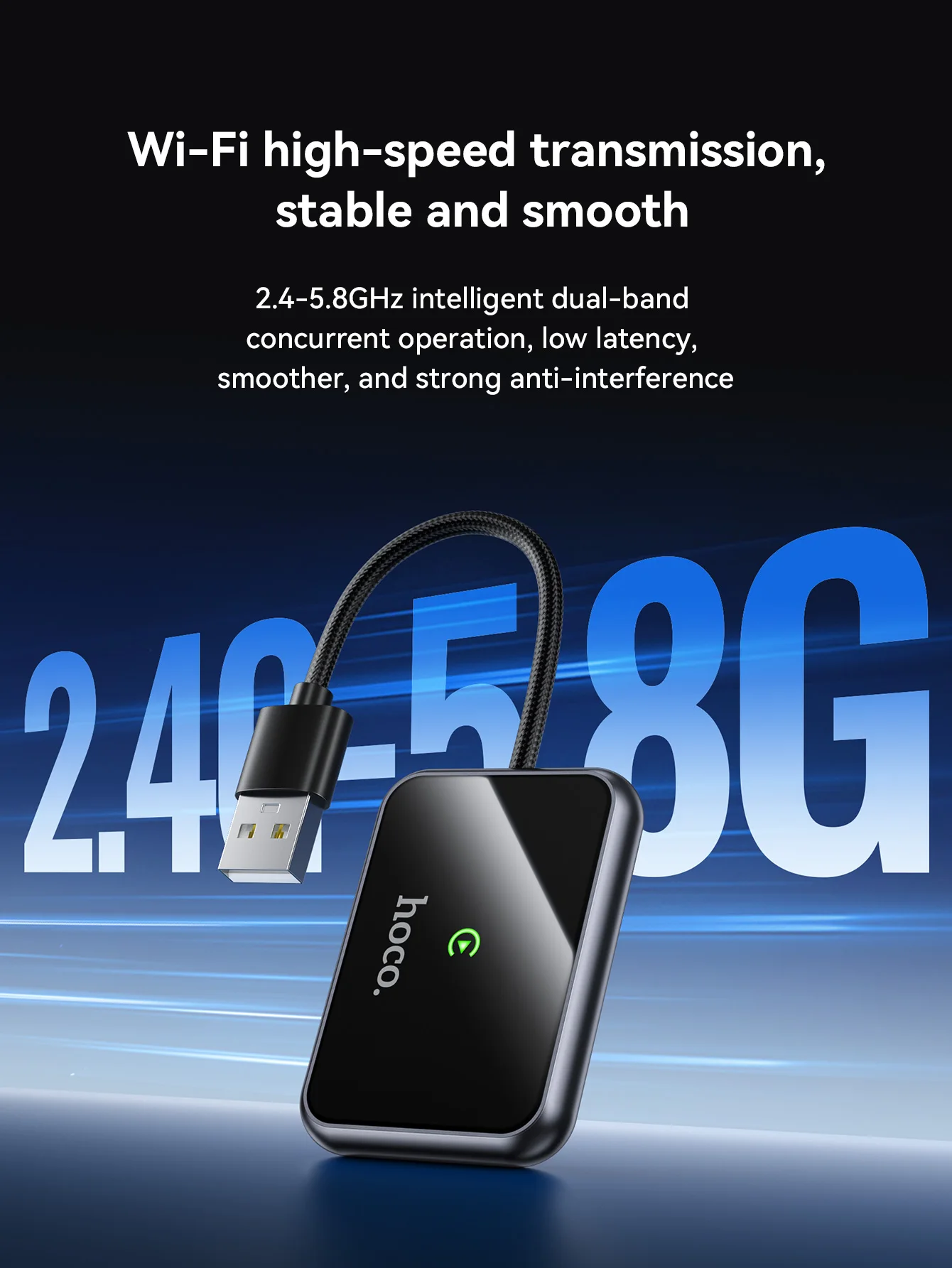Adaptador HOCO HU1 CarPlay Sem Fio – Plug & Play USB/USB-C para iPhone