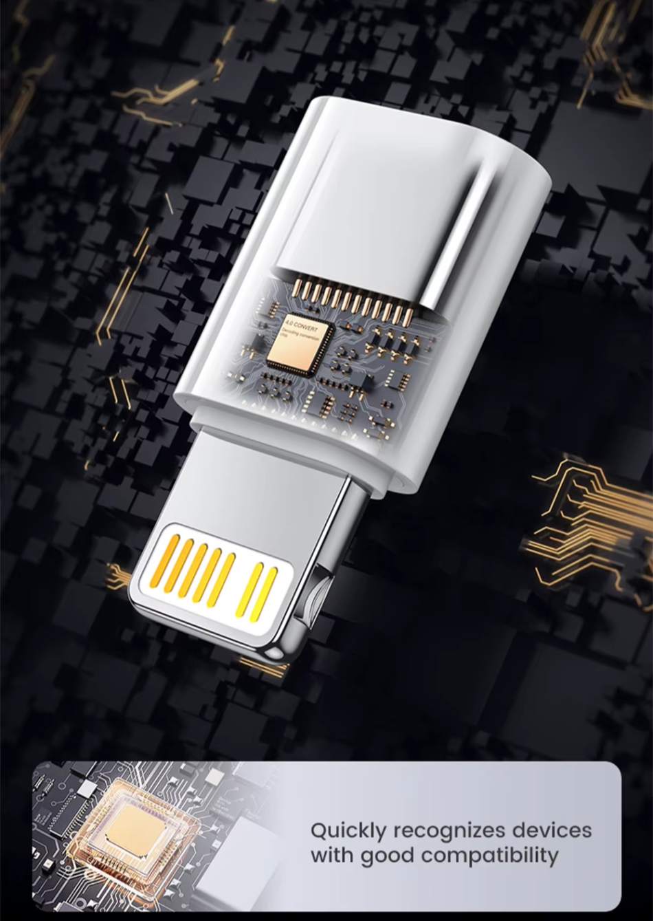 Adapte com Praticidade: Transforme seu cabo USB-C em Lightning (e vice-versa) com este adaptador compacto, rápido e seguro:
