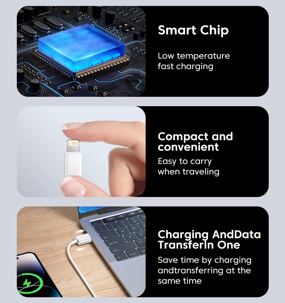 Um adaptador, múltiplas possibilidades: Transforme facilmente seu cabo USB-C em um conector Lightning com o adaptador inteligente da Elough: