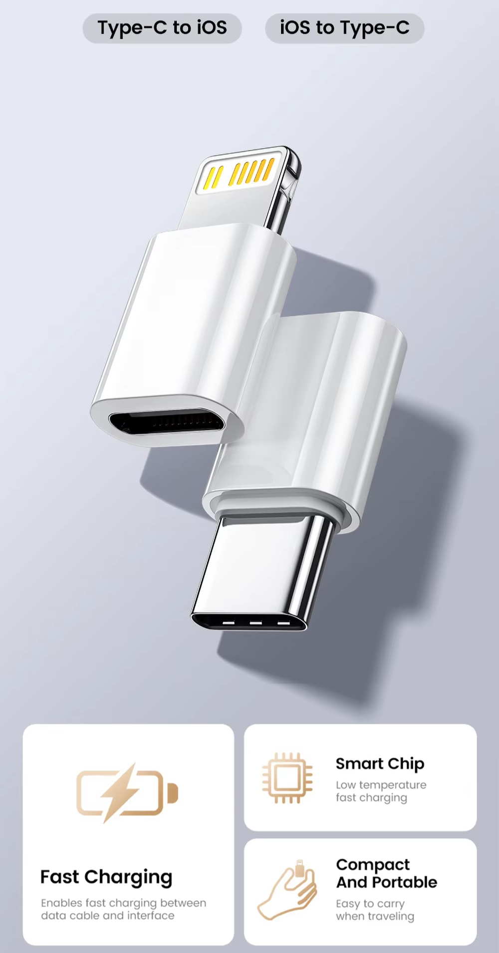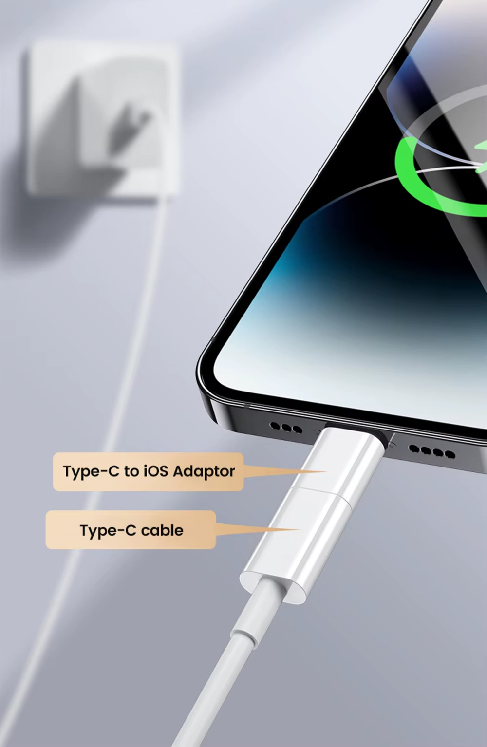Versatilidade em Dois Sentidos: Com dois adaptadores distintos, você pode alternar entre conexões USB-C e iOS com facilidade: