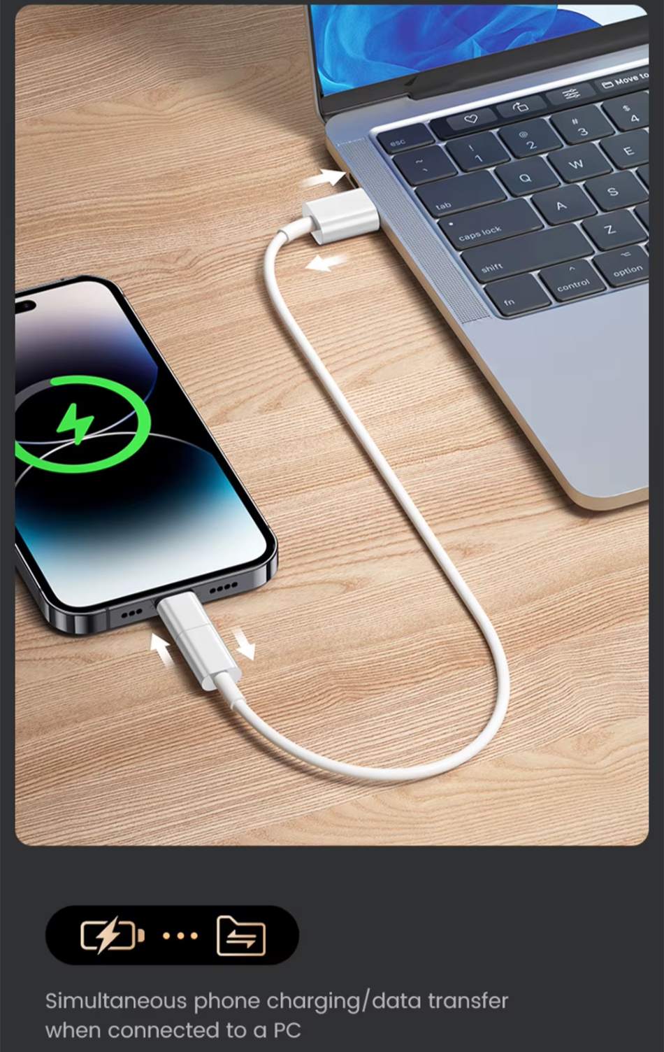 Carregamento e transferência ao mesmo tempo: Conecte ao PC e aproveite carregamento rápido e transferência de dados simultânea com apenas um adaptador: