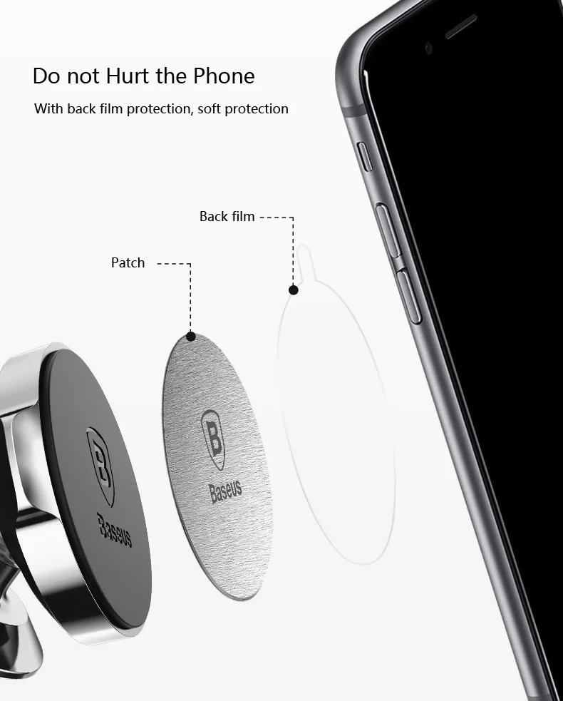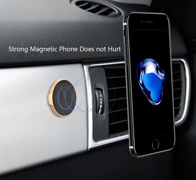 Suporte Magnético para Celular – Baseus: Fixe o suporte na saída de ar do seu veículo, e posicione seu celular para uma fixação estável:
