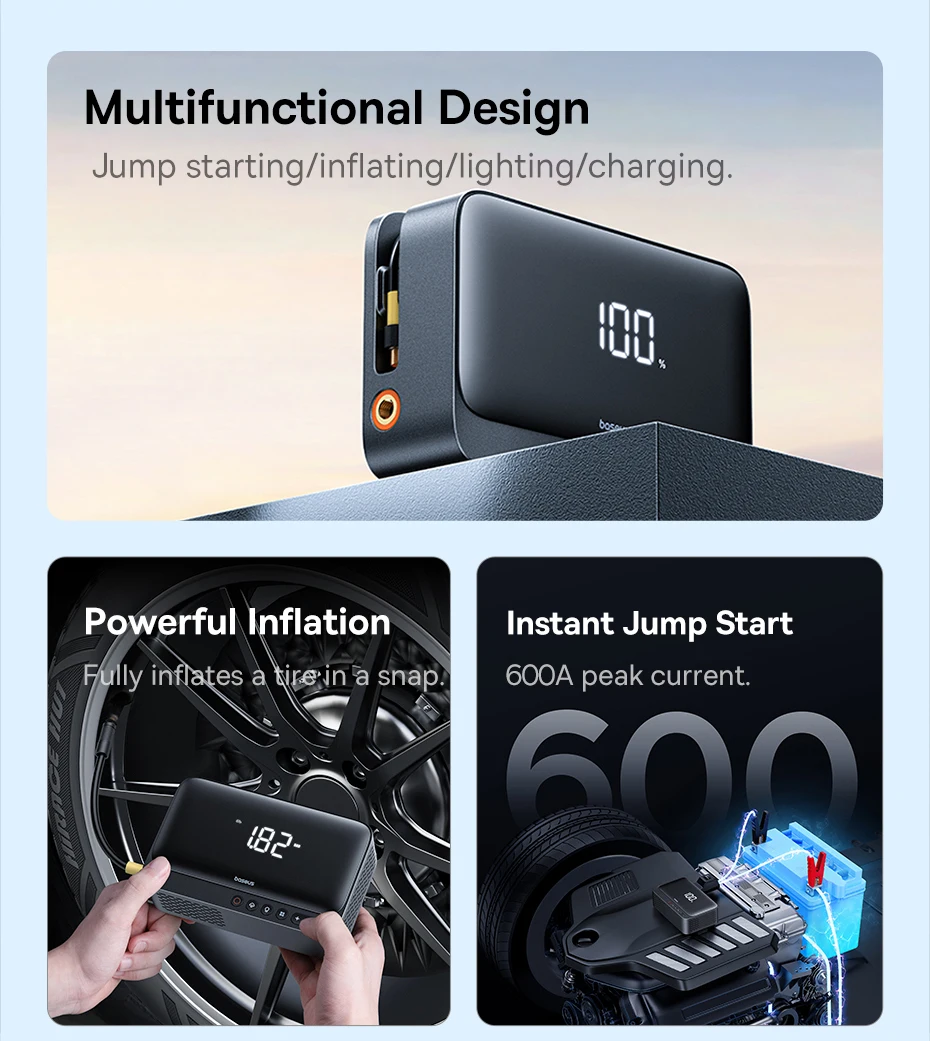 Auxiliar de Partida e Compressor Portátil 600A