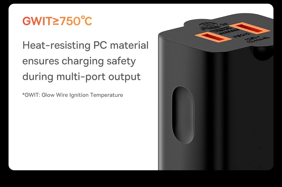 GWIT>750°C: O material de PC resistente ao calor garante a segurança do carregamento durante a saída de várias portas: