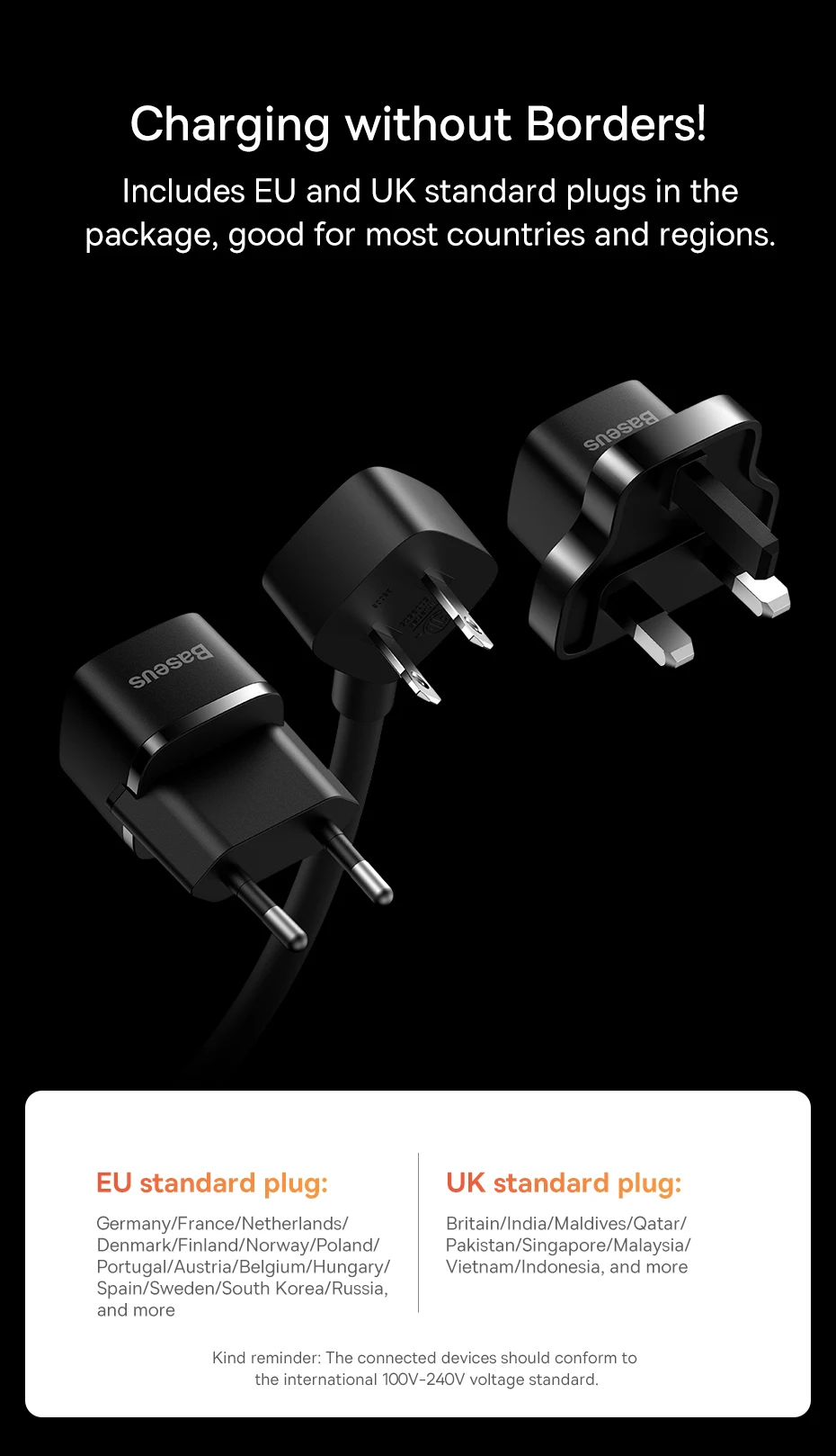 Inclui plugue EU e UK: Adaptado para a maioria dos países: