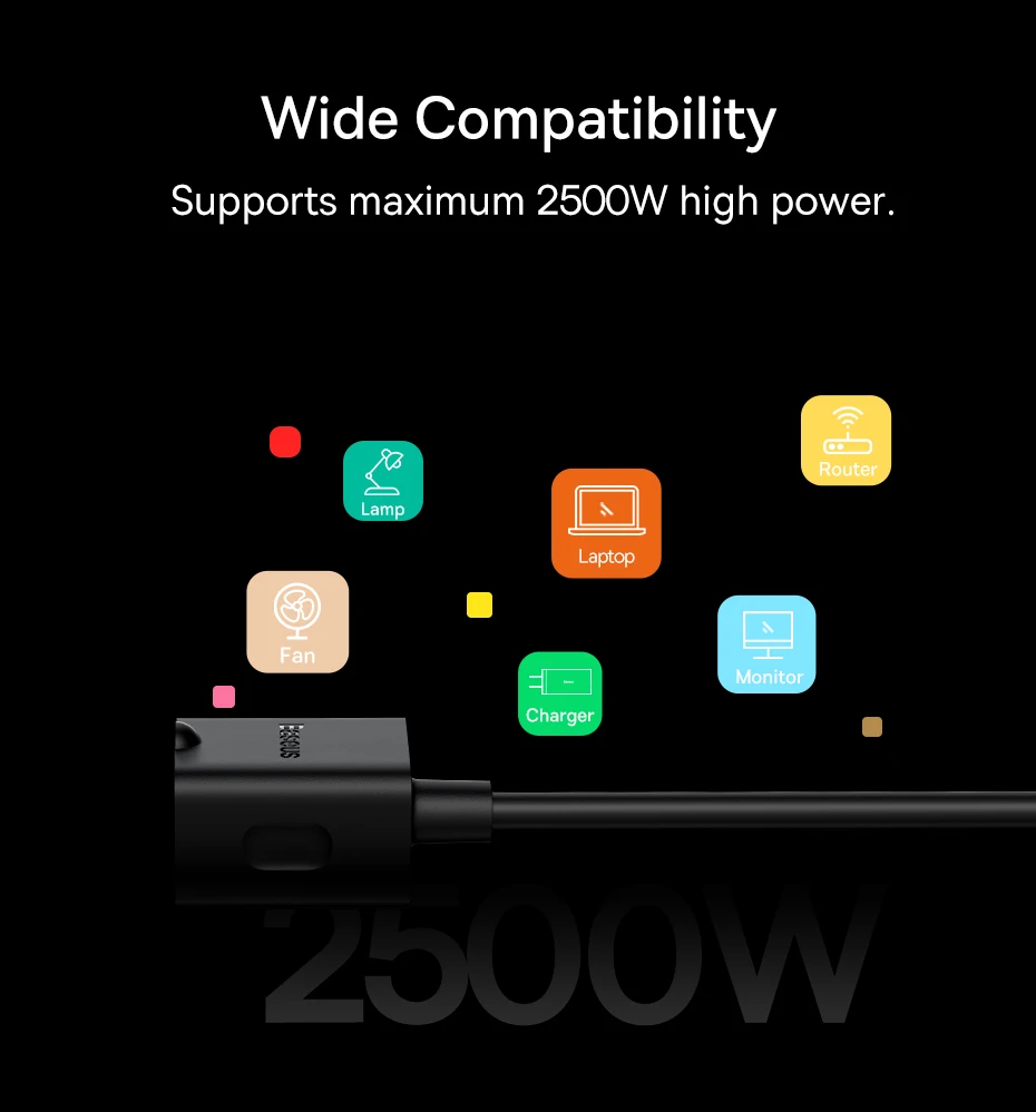 Alta compatibilidade: Suporta 2500W de potência: