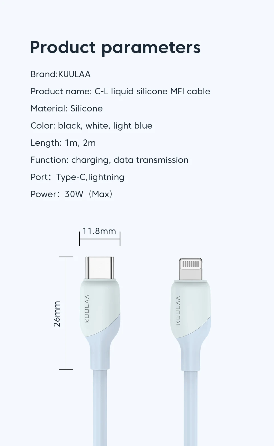 Cabo MFi 30W USB C para Lightning Kuulaa: Compatível com toda a linha iPhone 8 a 14: