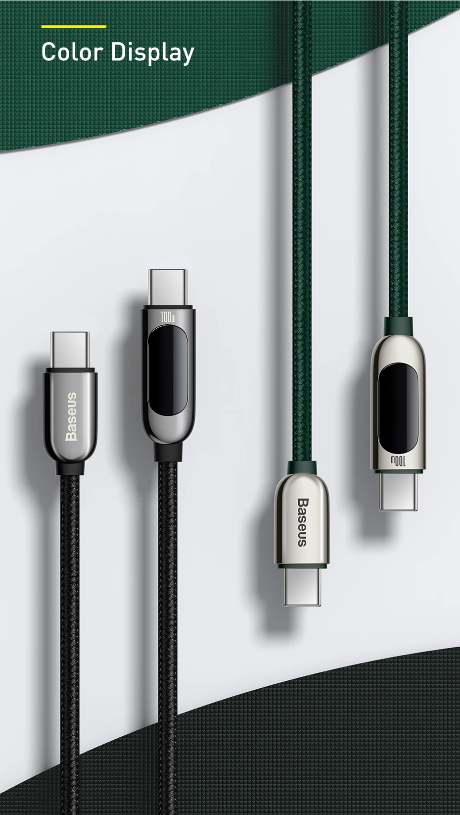 Cabo USB C para USB C 100W com Display de LED: Transmissão de Dados e Carregamento Rápido:
