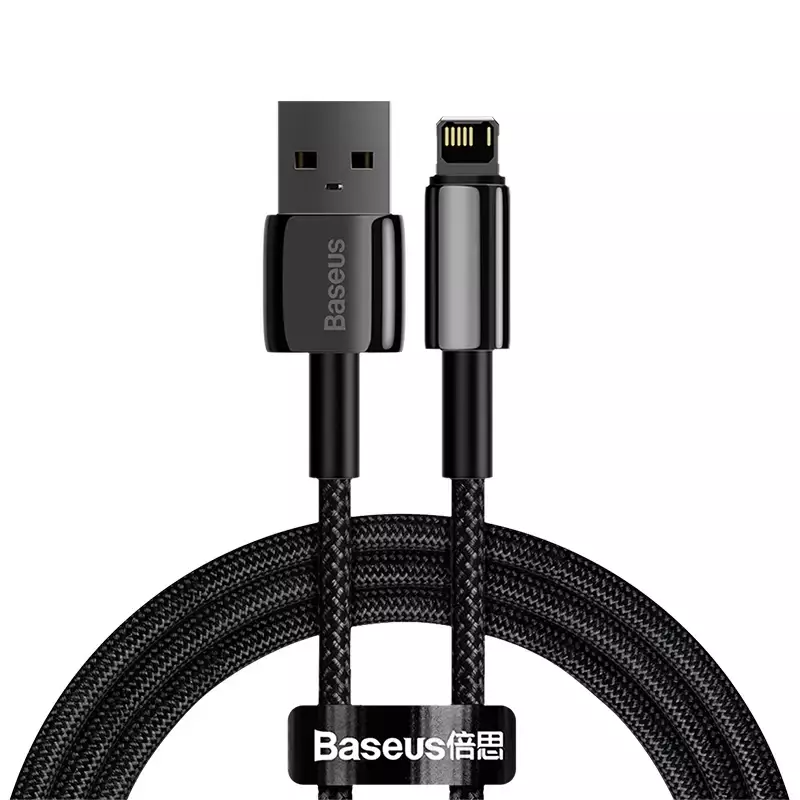 Cabo Baseus Cafule USB-A para Lightning 2.4A: Carregamento rápido e seguro com 2.4A. Feito em liga de zinco e nylon trançado, é durável e compatível com todos os dispositivos Apple: