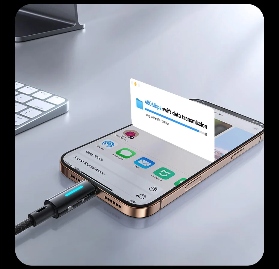 Transferência rápida e sem complicações: Velocidade de 480Mbps para envio ágil de vídeos e imagens — transfira arquivos de 1GB com facilidade: