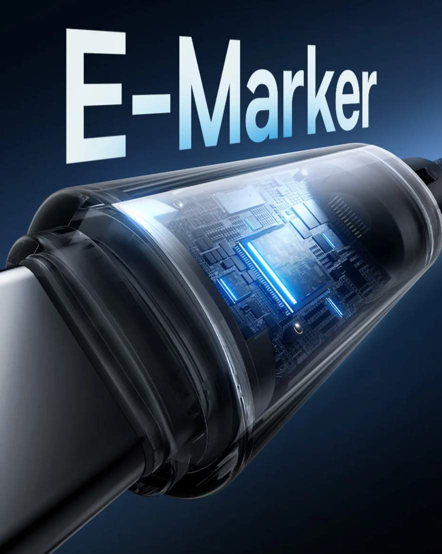 Chip E-Marker Inteligente: Reconhece automaticamente o dispositivo e ajusta a corrente ideal para proteger a saúde da bateria durante o carregamento: