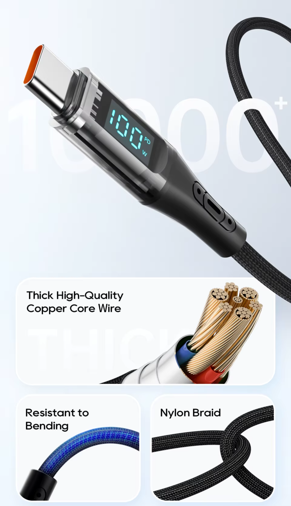 Estrutura Reforçada em Malha de Nylon: Construído com material trançado de nylon de alta qualidade, o cabo oferece durabilidade superior e resistência à tração, dobragens e desgaste diário: