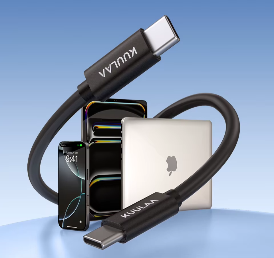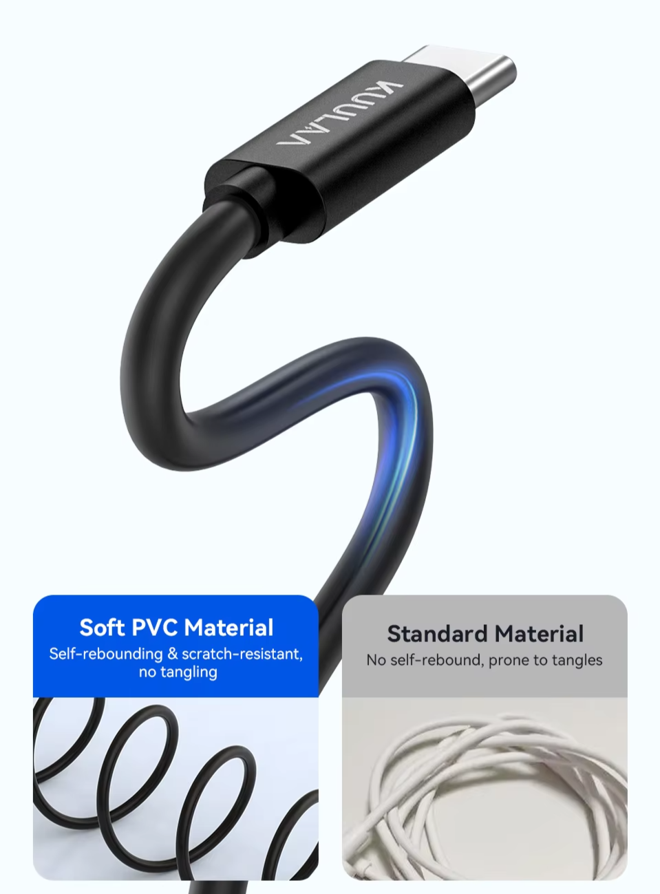 Alta Flexibilidade e Resistência a Emaranhados: Feito com material PVC macio de alta qualidade, o cabo KUULAA é resistente a arranhões e retorna à forma original mesmo após dobrado: