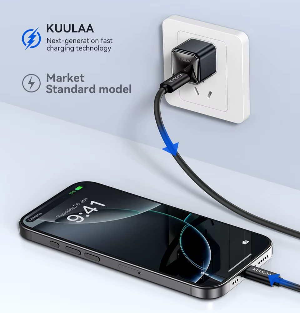 Carregamento Rápido com Protocolo Certificado: Compatível com protocolos QC3.0 e FCP, o cabo Kuulaa garante carregamento rápido e eficiente com baixa temperatura, ajudando a preservar a vida útil da bateria: