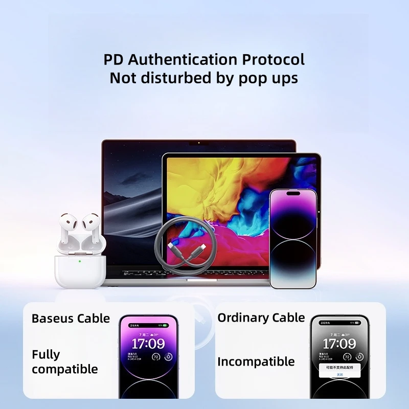 Ampla Compatibilidade: Carregue todos os seus dispositivos com o Cabo Baseus – iPad, iPhone, Laptop e AirPods: