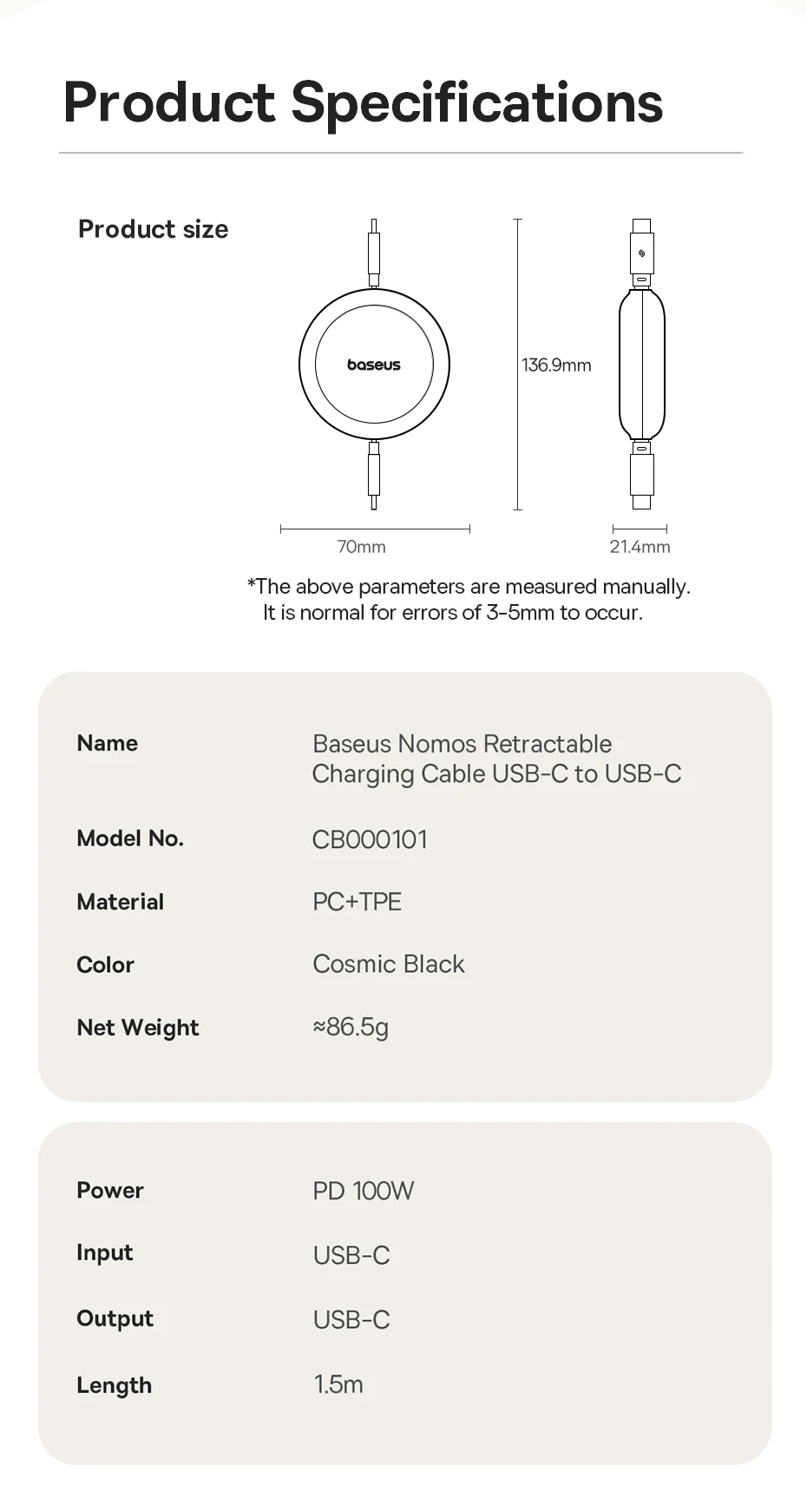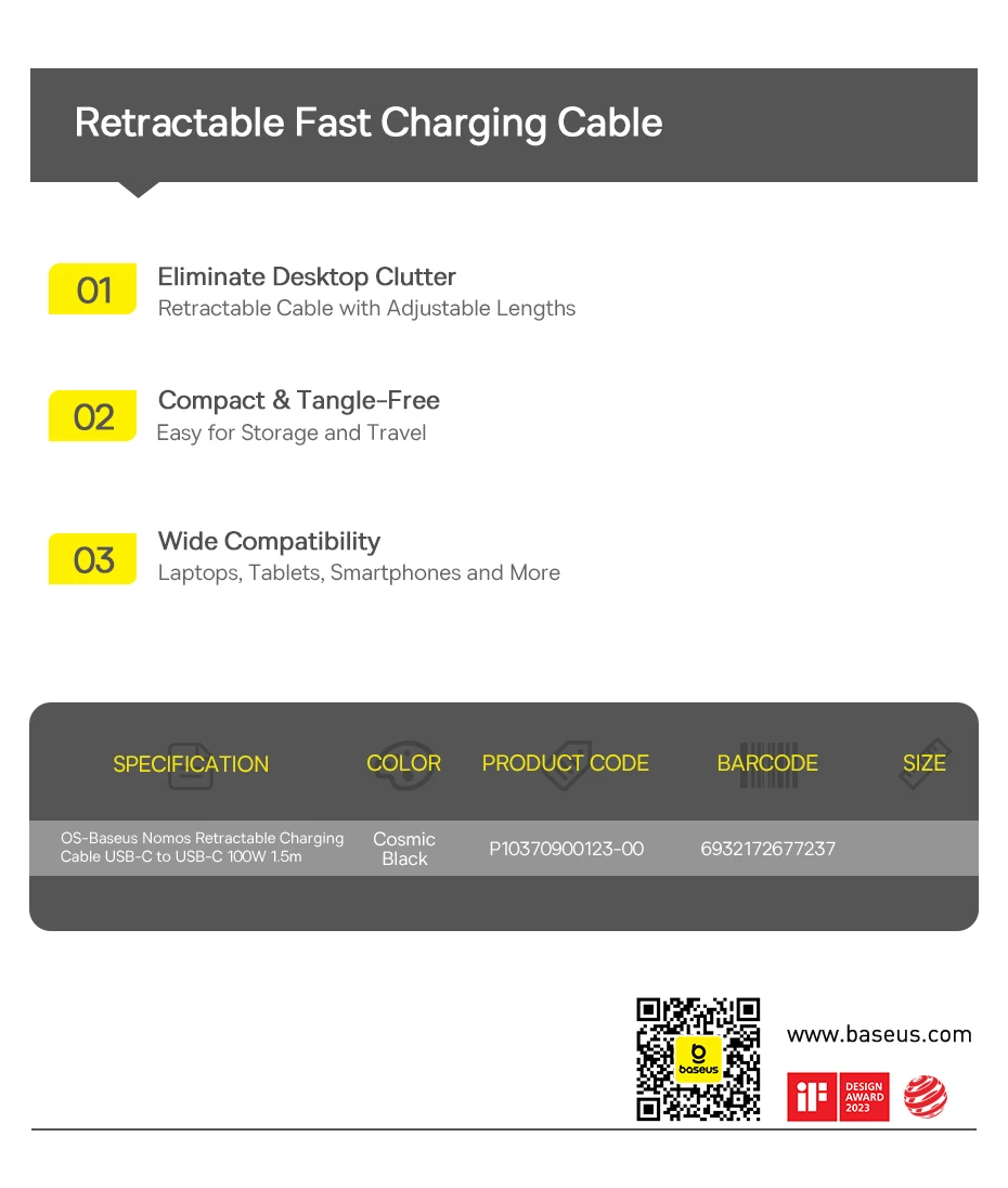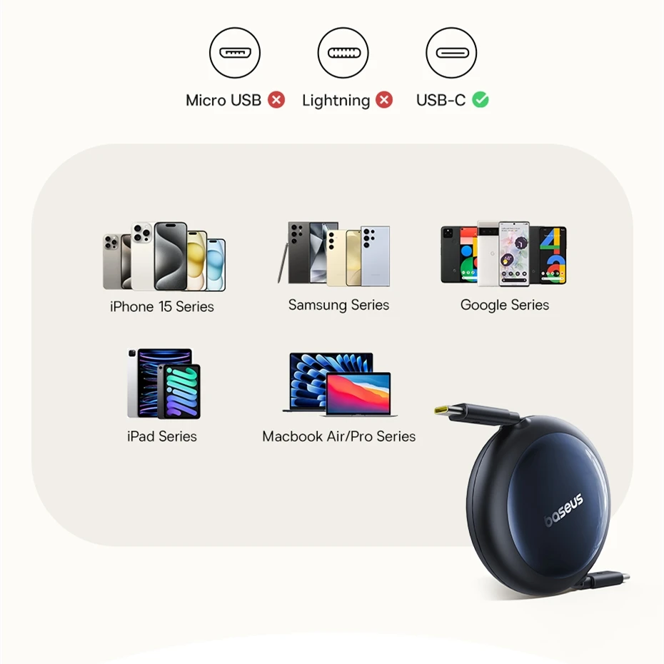 Cabo USB C Retrátil 100W Nomos 1.5m