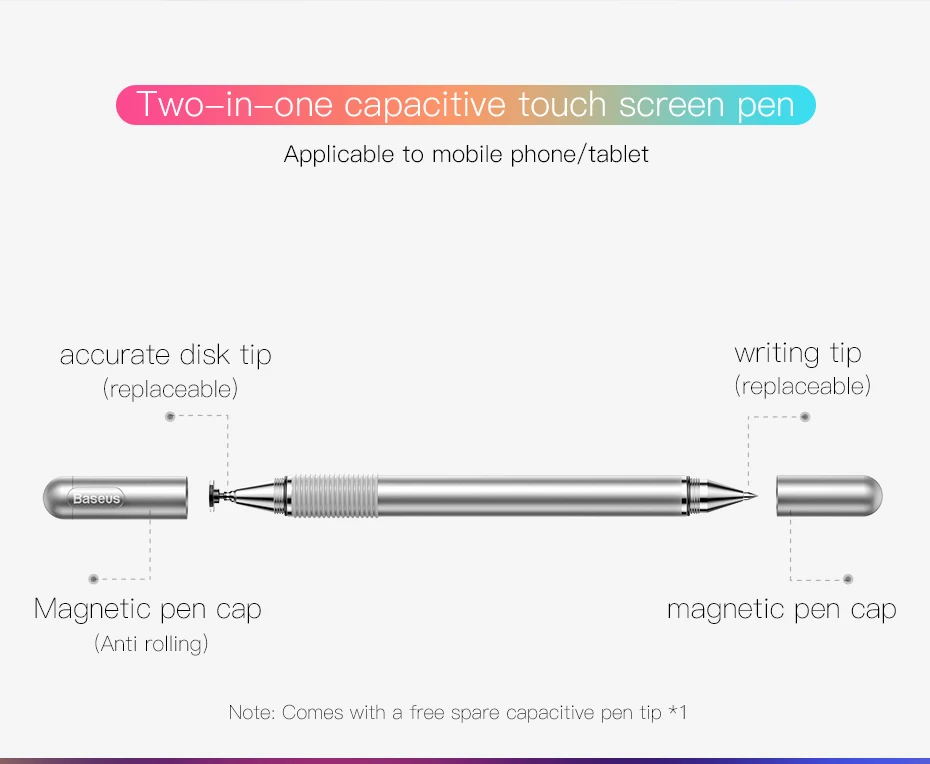 2 em 1: A caneta touchscreen capacitiva Baseus é aplicável para celulares e tablets, ideal para pintura, escrita ou jogos: