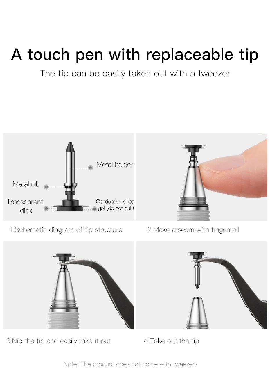 Toque Sensível e Delicado: A ponta de disco transparente toca a tela com suavidade e flexibilidade, permitindo mais facilidade no seu uso: