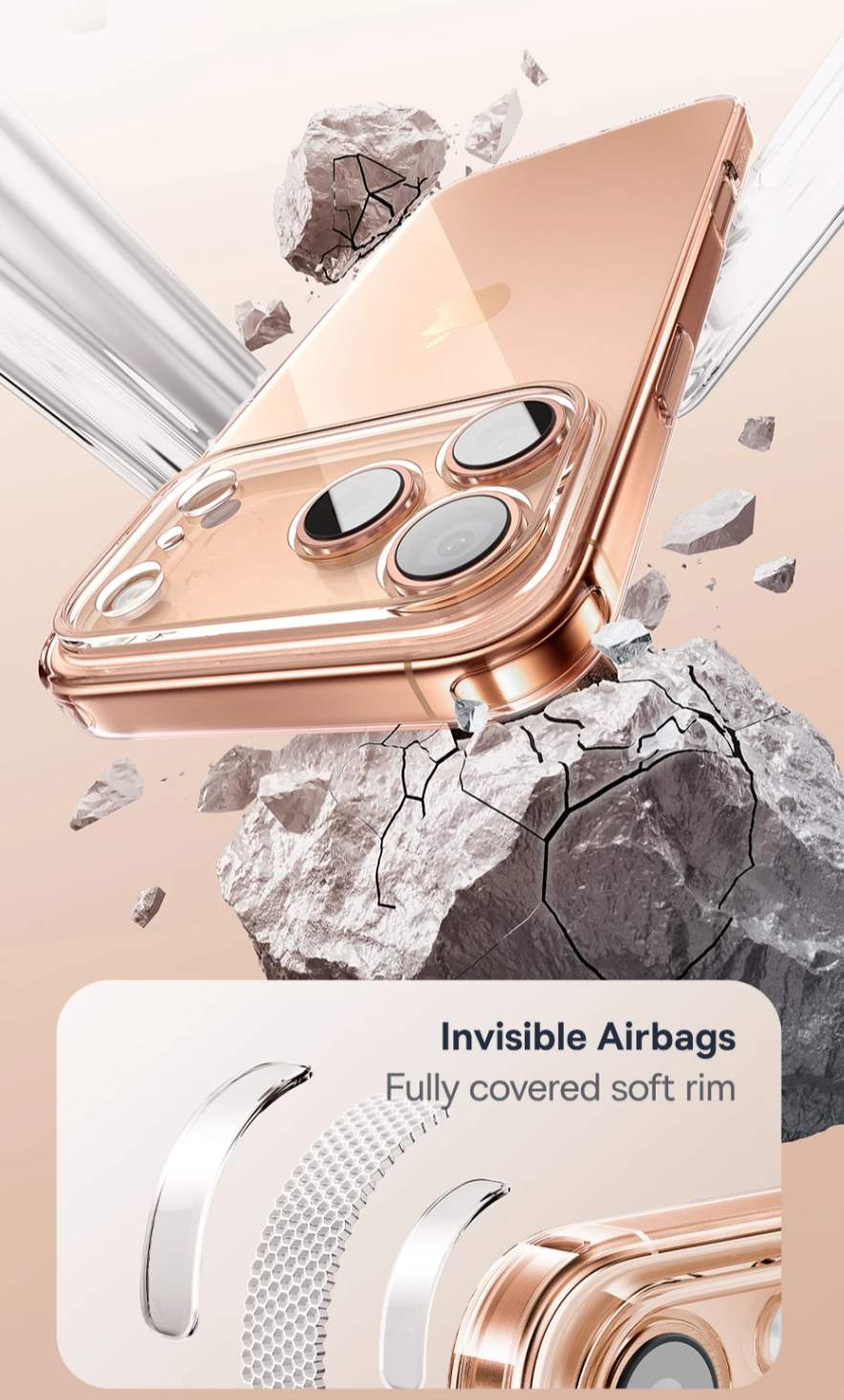 Proteção Completa com Airbags Invisíveis: Amortece quedas com bordas macias e airbags embutidos que absorvem impactos. Segurança total para seu iPhone sem comprometer o design: