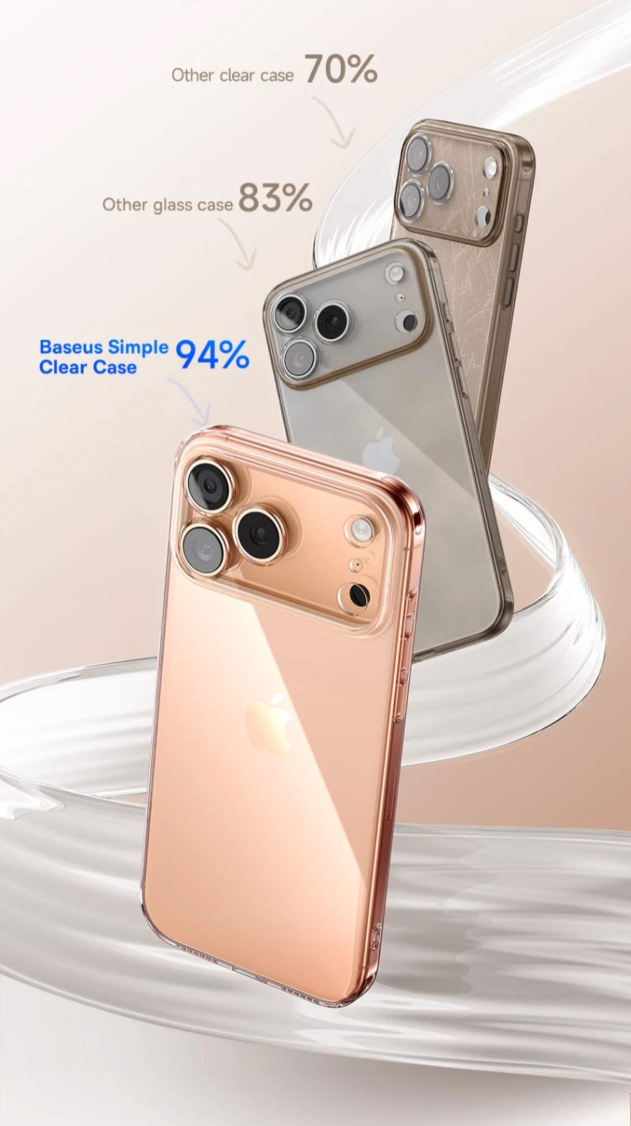 Transparência Imbatível: A Capa Baseus Simple Clear oferece até 94% de transmitância de luz, superando capas comuns e de vidro. Máxima transparência para destacar seu iPhone com elegância: