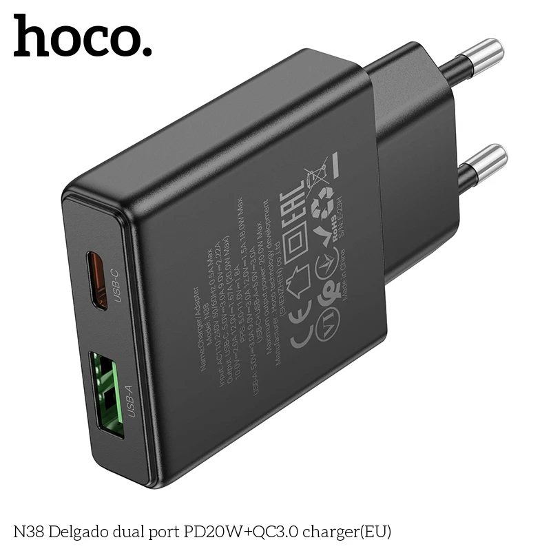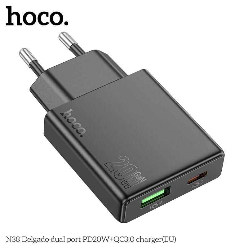 Carregador Hoco N38 20W PD + QC3.0 com Dupla Porta (USB-C + USB-A)