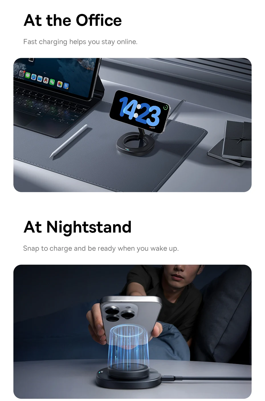 Fixação magnética poderosa e estável: Conta com 16 ímãs integrados e design com contrapeso para manter seu dispositivo firme durante o carregamento: