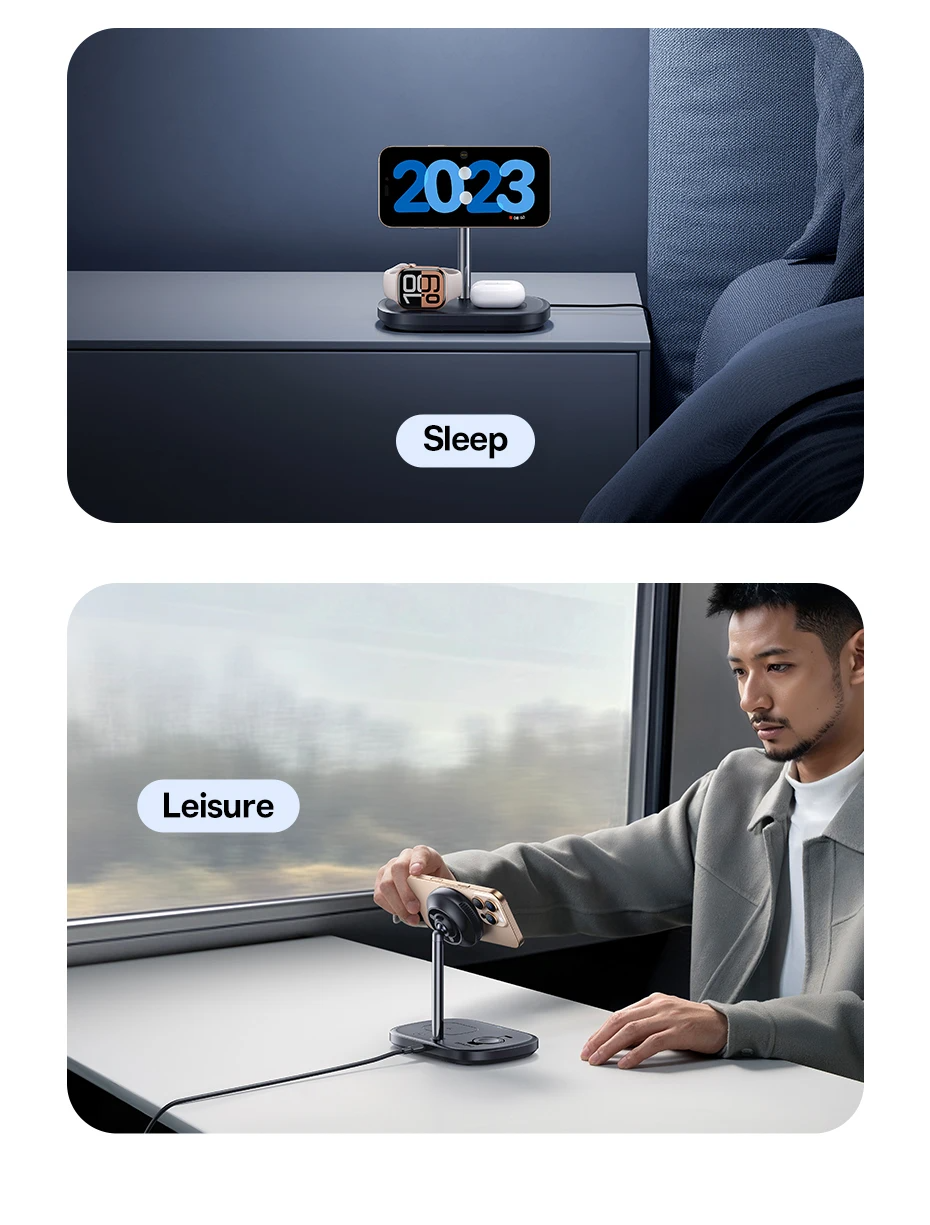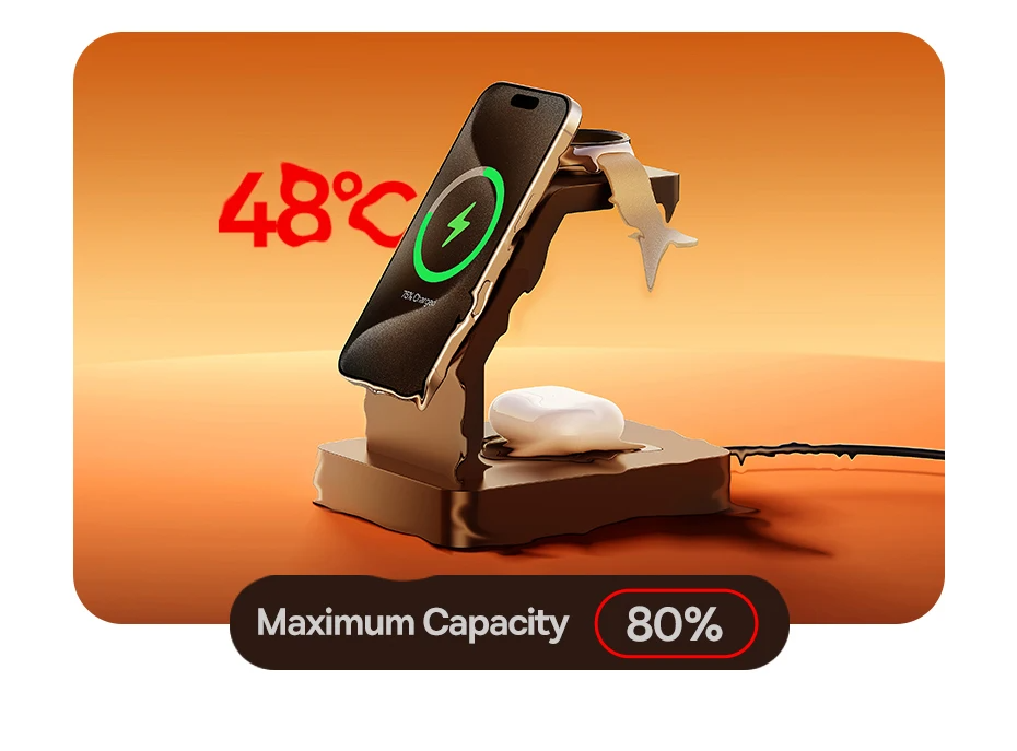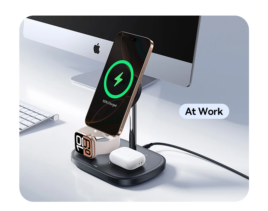 Carregamento 3 em 1 Sem Fio: Ideal para usuários Apple: carregue iPhone (até 15W), AirPods (até 5W) e Apple Watch (até 2,5W) simultaneamente com praticidade e design elegante: