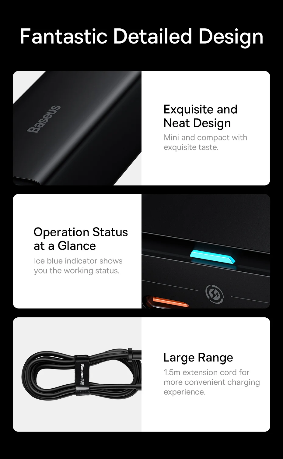 Carregamento Seguro Sem Sobrecarga: A tecnologia de carregamento BPSII permite que o carregador ajuste automaticamente a tensão, corrente e potência de saída de acordo com os dispositivos, tornando o carregamento rápido e bidirecional: