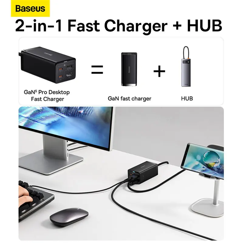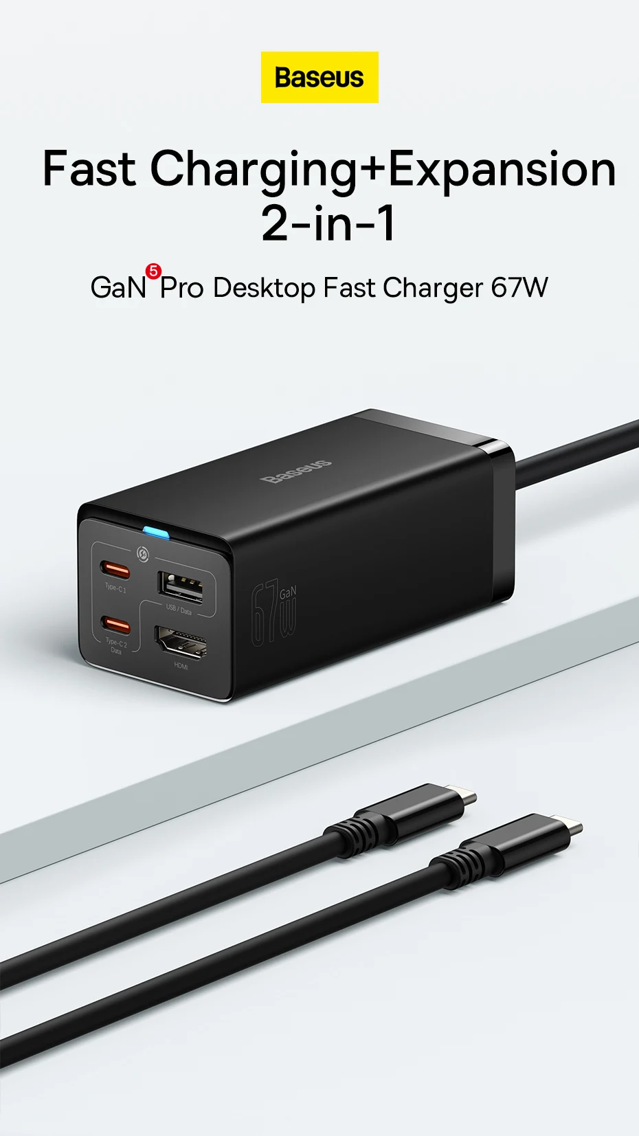 2 em 1: Carregador Rápido 67W GaN5 Pro e Hub USB C: