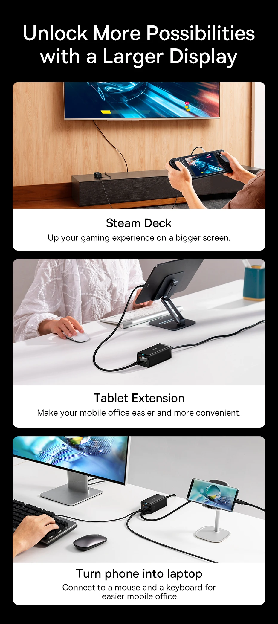 Saída HDMI 4K/30Hz: Encaixe seu Steam Deck com o monitor, teclado e mouse, e aprimore suas experiência de jogos em uma tela grande: