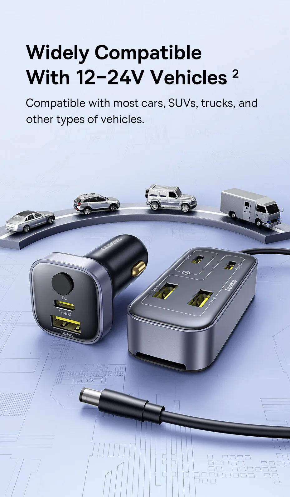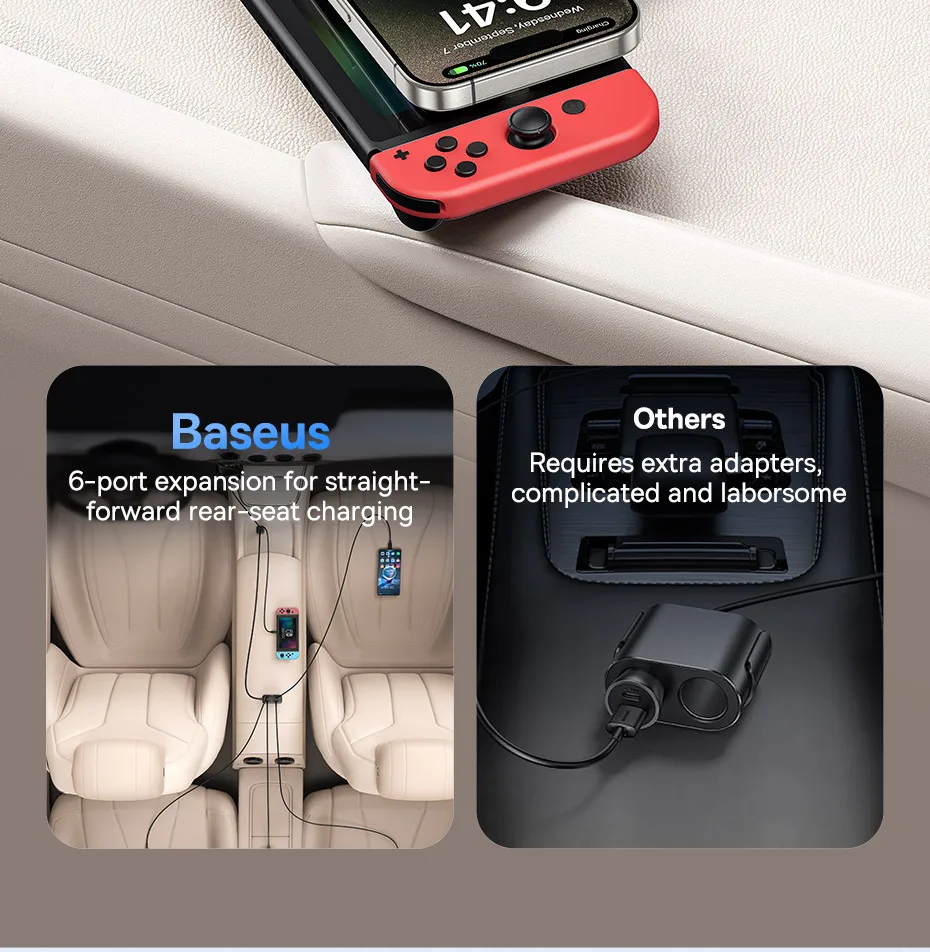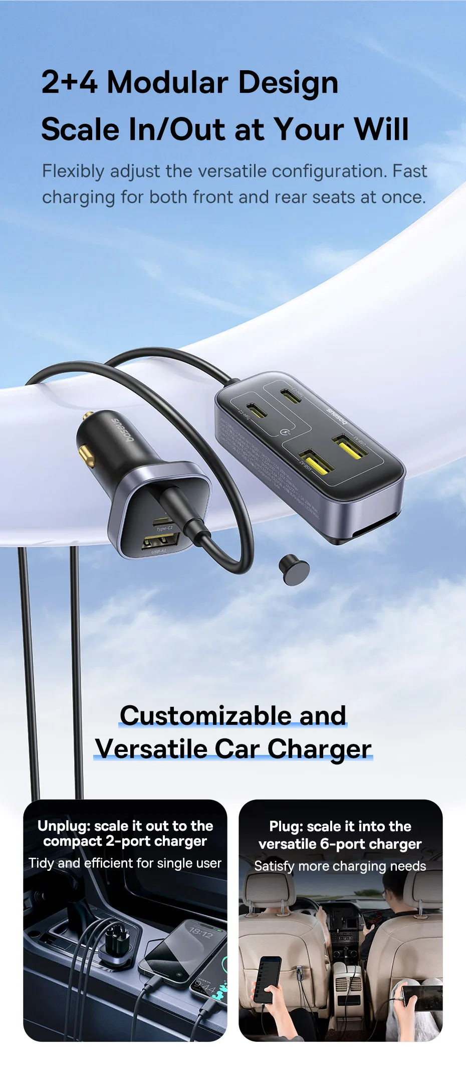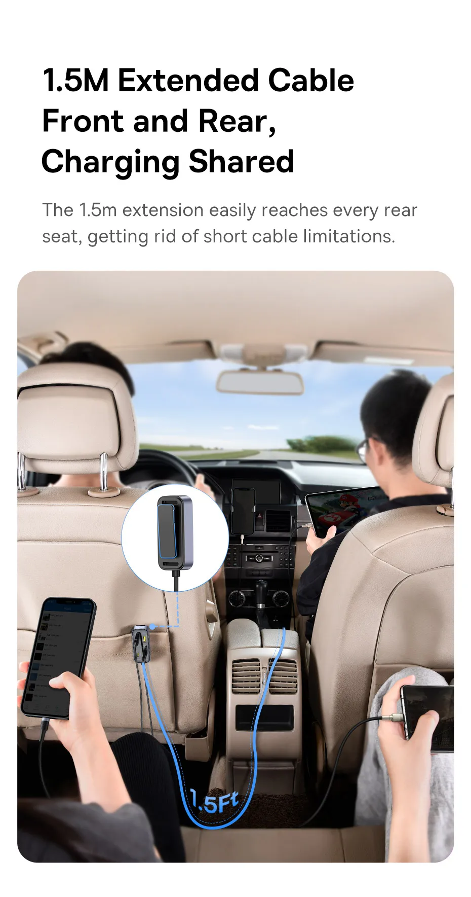 Carregador Veicular 110W com Cabo Extensor 6 Portas