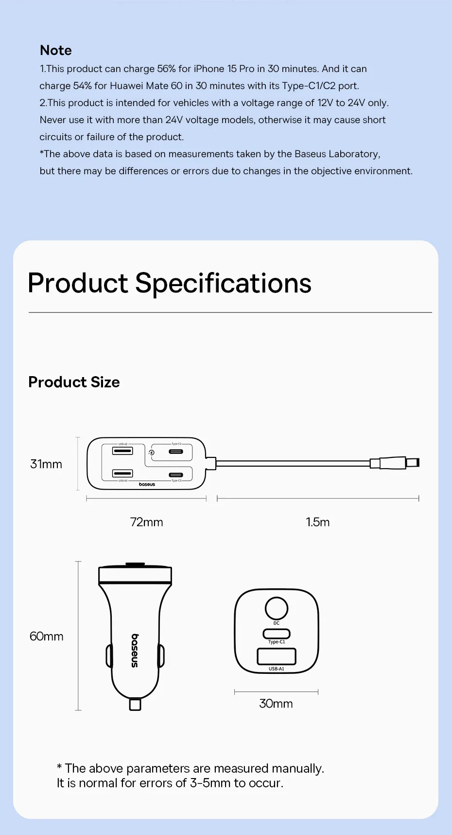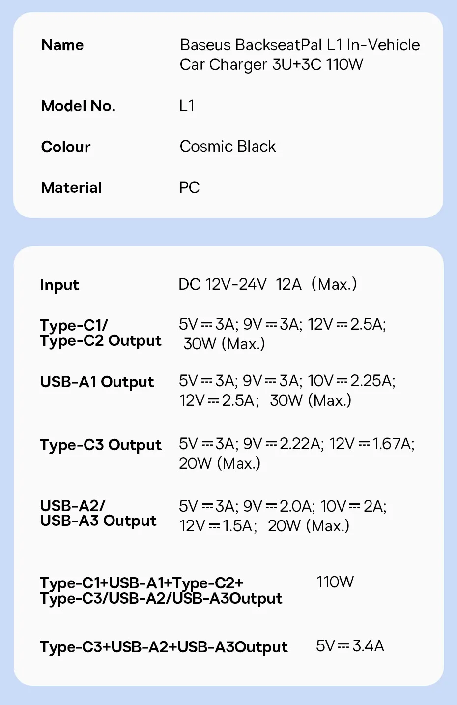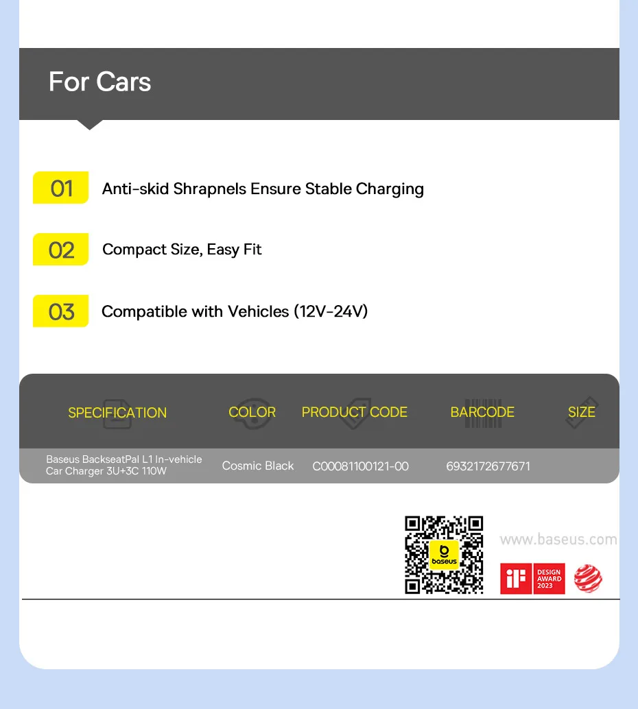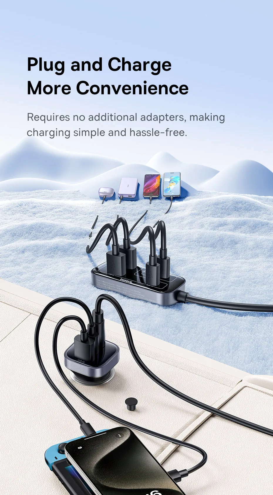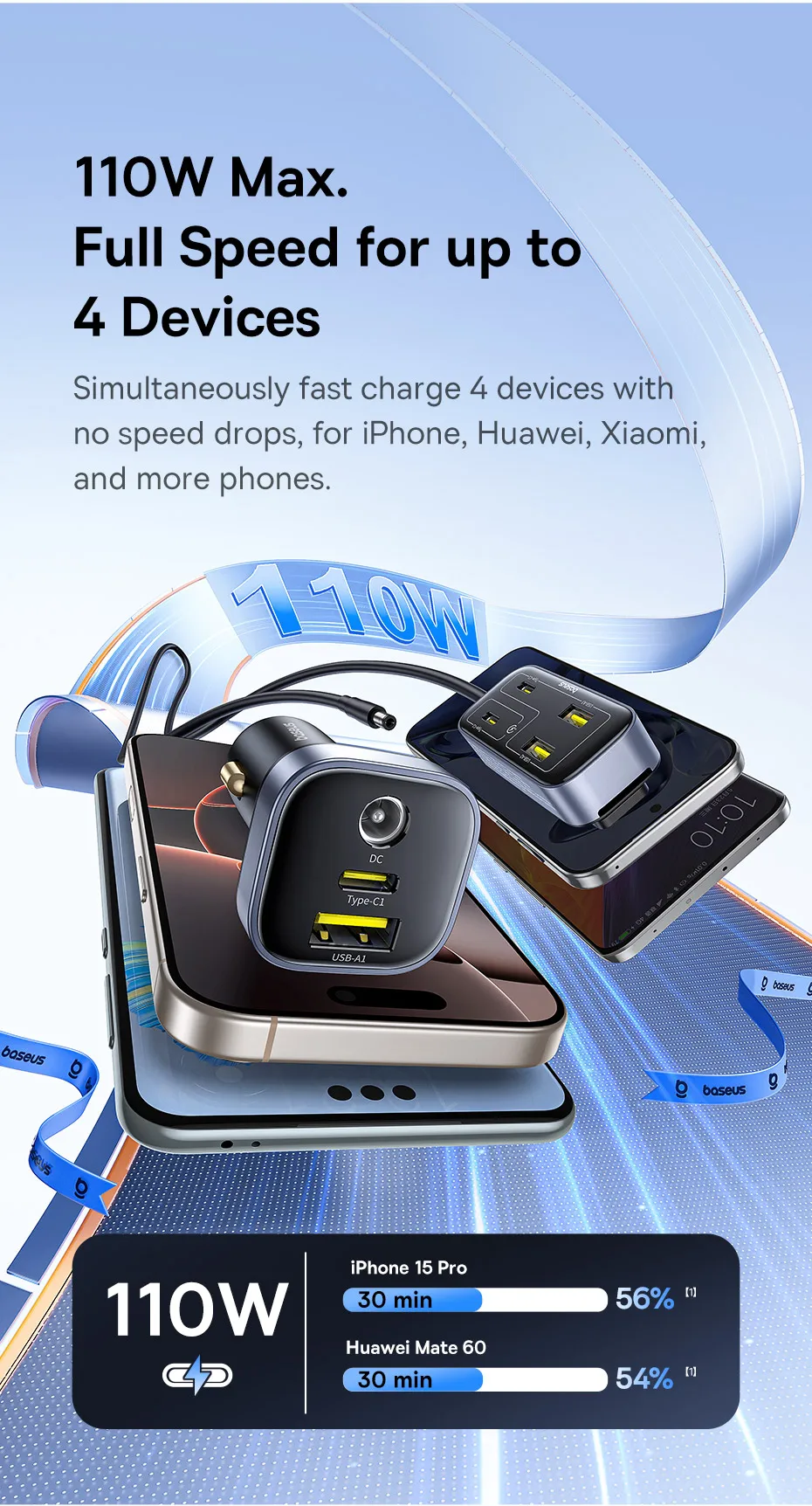 Carregador Veicular 110W com Cabo Extensor 6 Portas