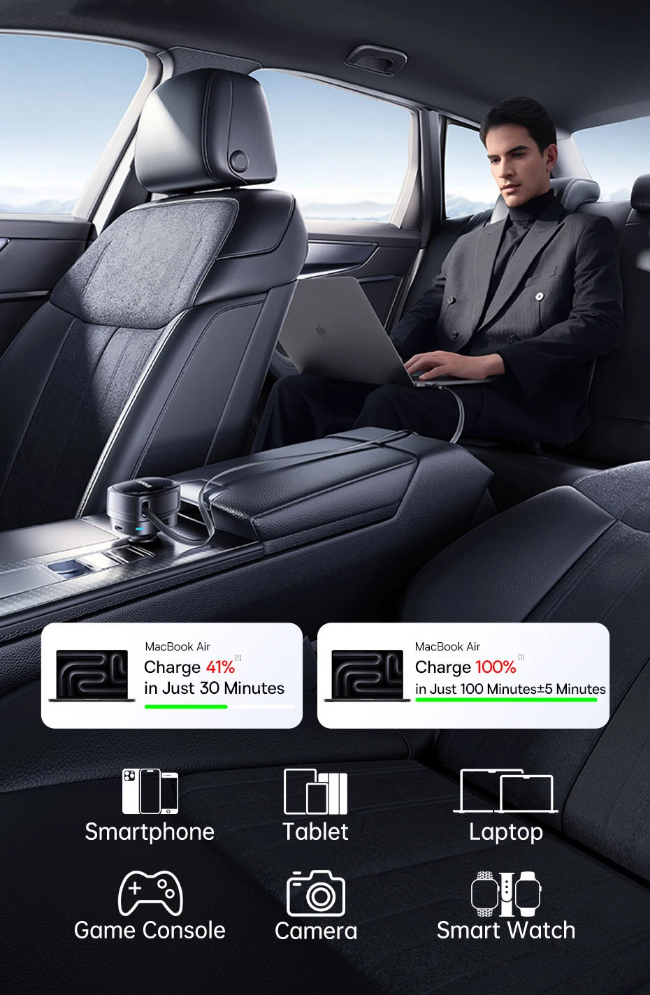 Carregamento Rápido 45W: Carregue seu Laptop ou iPhone 16 durante suas viagens: