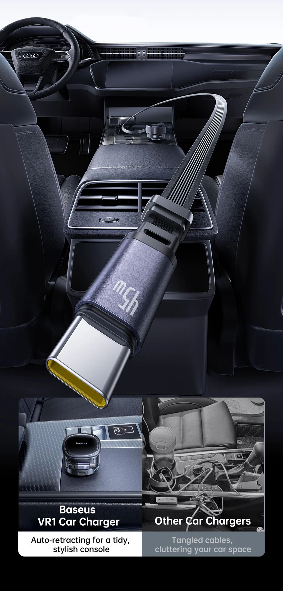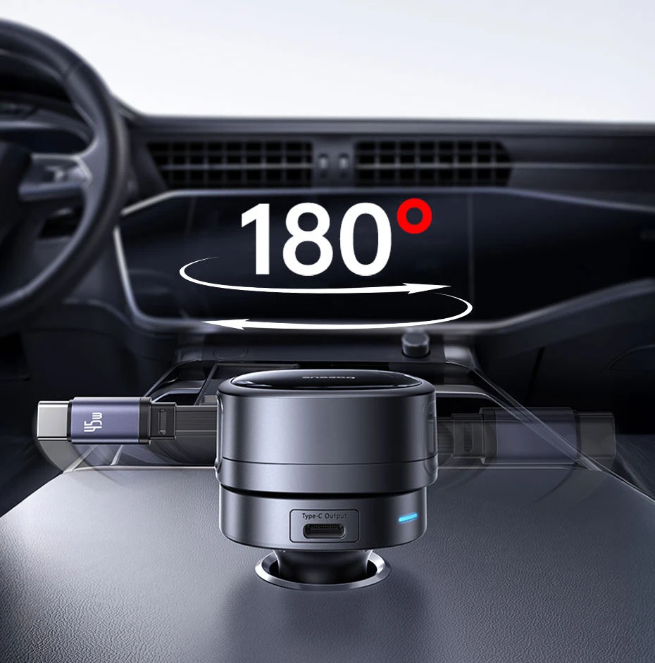 Rotação 180º: Carregue seus dispositivos em qualquer assento do seu veículo: