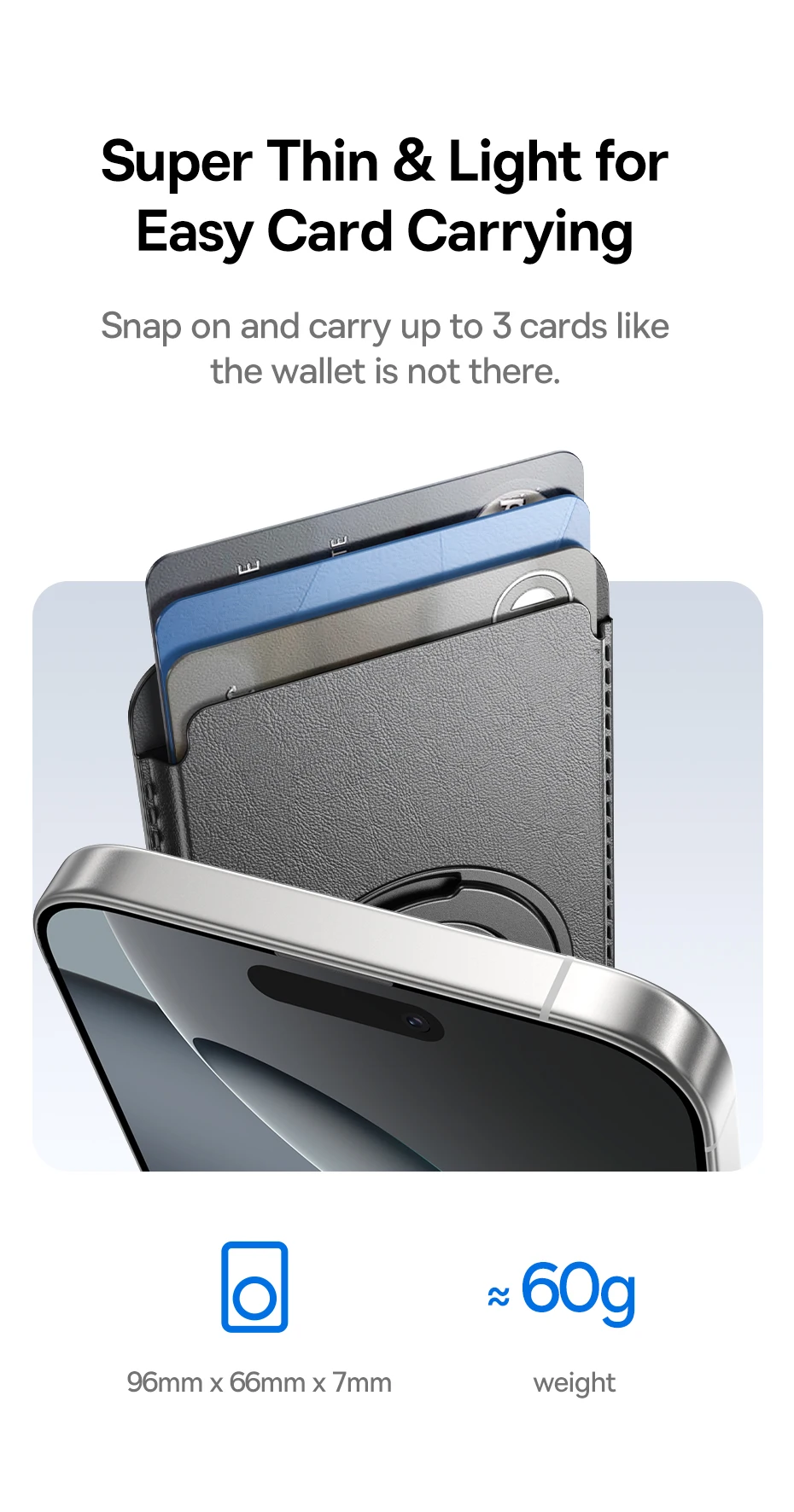 Ultra Fina e Leve para Levar Seus Cartões com Facilidade: Fixe no seu iPhone e carregue até 3 cartões como se nem estivesse usando carteira: