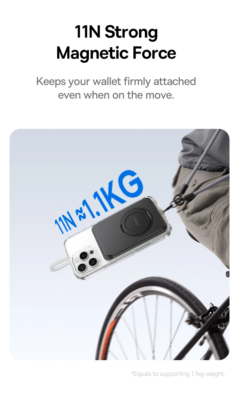 Fixação Magnética Potente de 11N: Sua carteira sempre segura, mesmo em movimento.Força magnética equivalente a 1,1 kg — ideal para uso em atividades do dia a dia sem risco de queda: