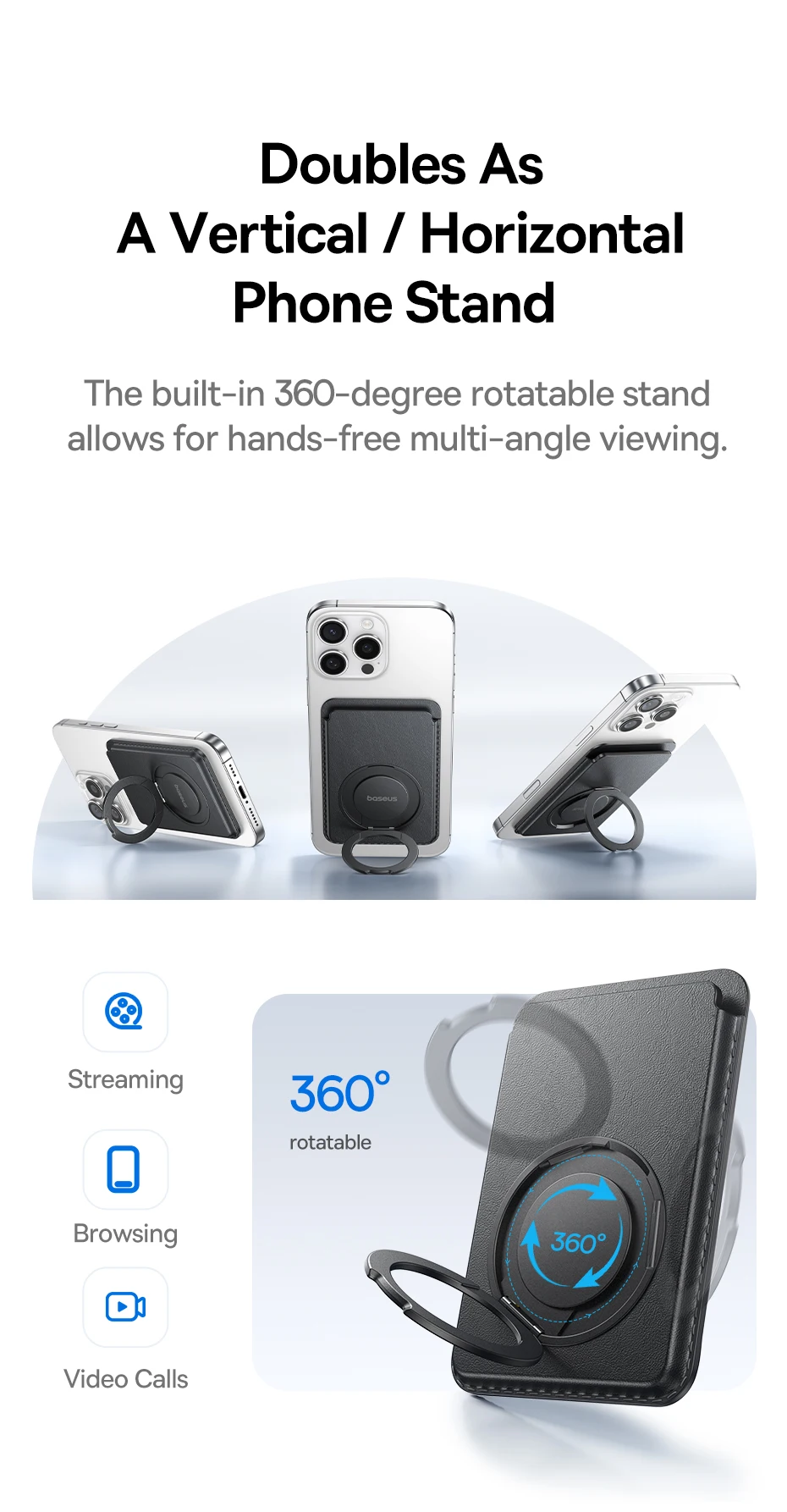 Funciona Também Como Suporte para Celular: Use na vertical ou horizontal com o suporte giratório embutido de 360° – ideal para streaming, chamadas de vídeo e navegação sem as mãos:
