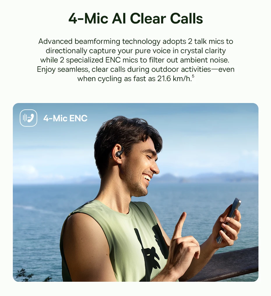 Fone de Ouvido Bluetooth 6.0 Orelha Aberta Eli Sport 2 Baseus