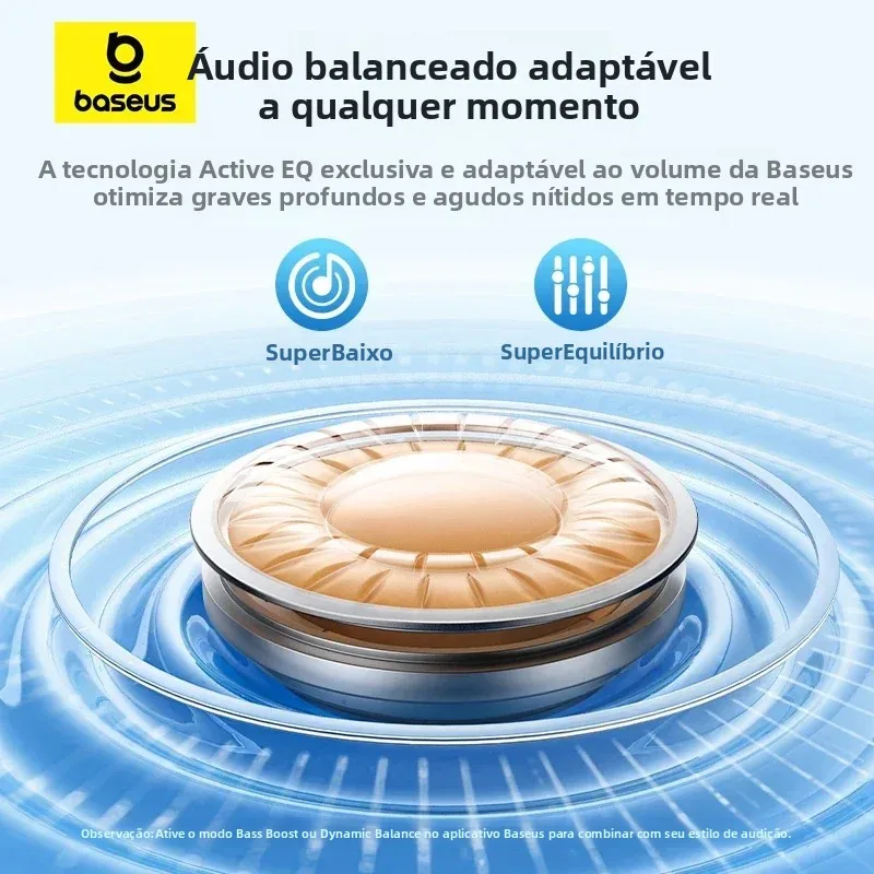 Controle Total via App: Personalize sua experiência com modos de som, redução de ruído, EQ dinâmico e localização dos fones — tudo no app Baseus:
