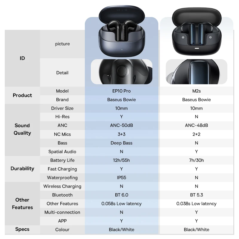 Tabela Compativa dos Modelos: EP10 Pro x M2s: