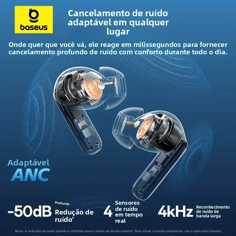 Cancelamento Personalizado: Escolha entre até 5 modos de cancelamento de ruído e ajuste conforme o ambiente direto no app Baseus: