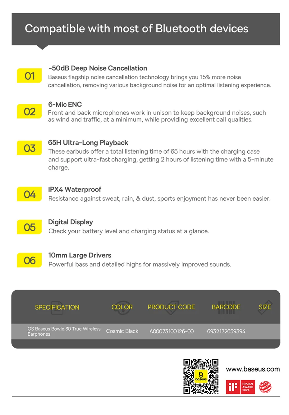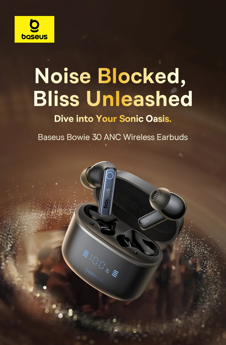 Display Digital: Confira o nível da bateria e o status de carregamento diretamente do display digital do Fone Bowie 30: