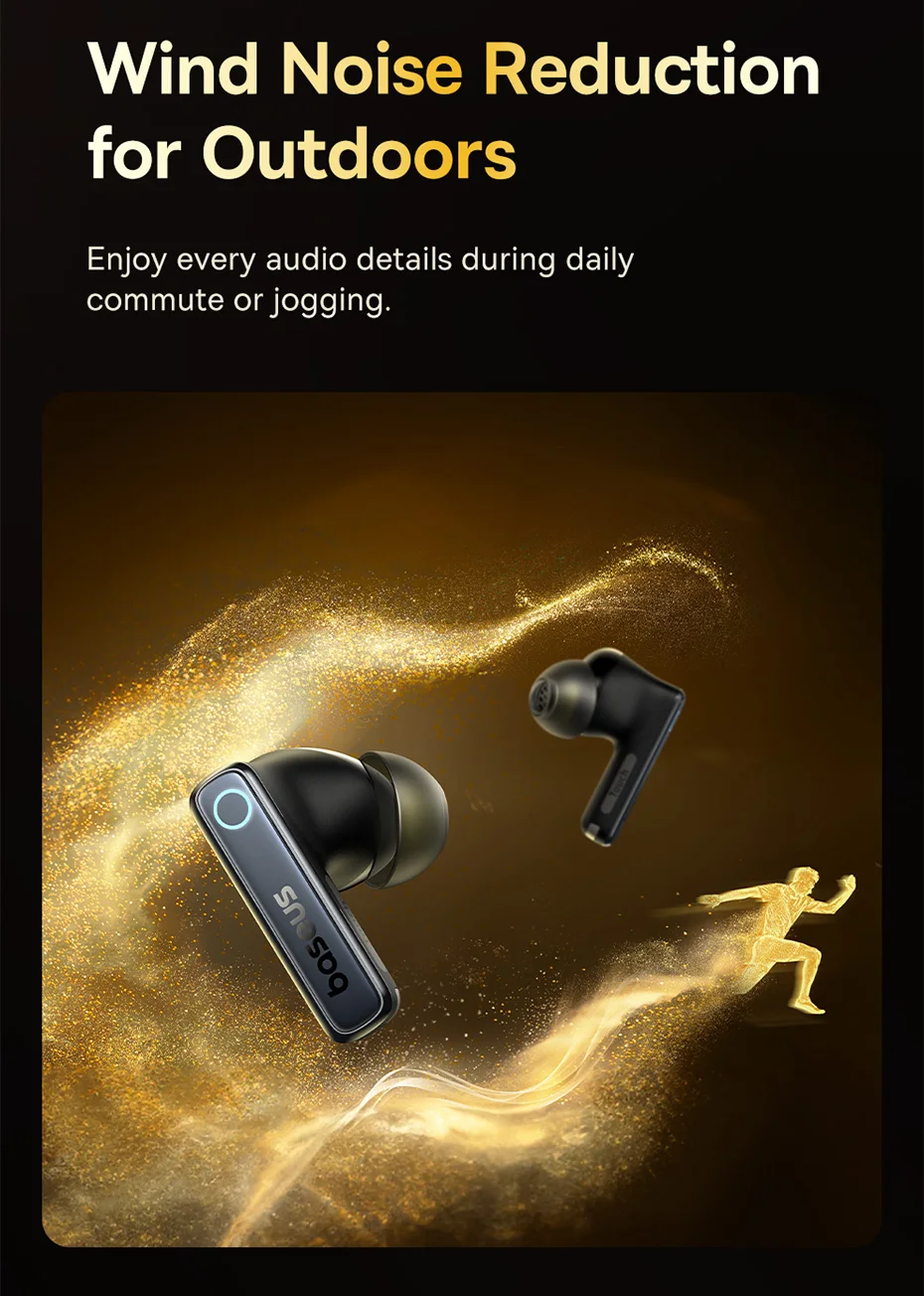 Redução de Ruído em Ambientes Externos: O Fone Baseus também possui um sistema de redução de ruído dos ventos: