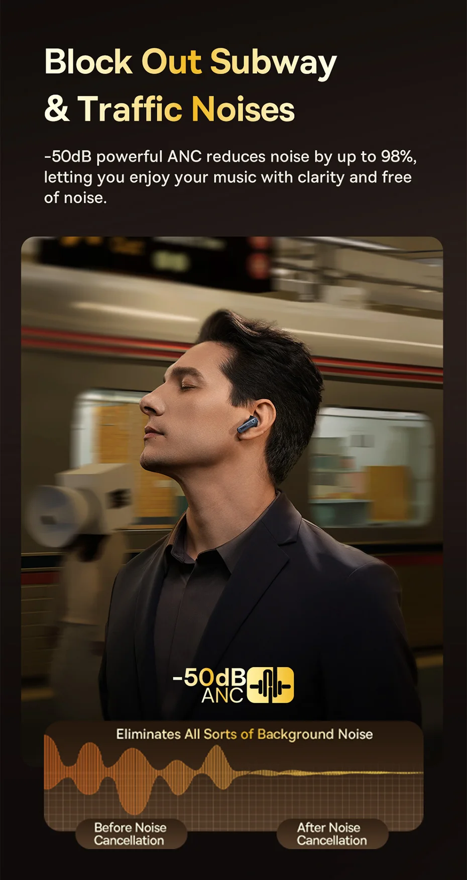 -50dB de Ruídos: O cancelamento de ruído permite redução de atle 98% – perfeito para locais barulhentos: