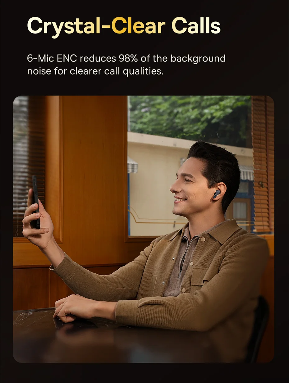 Chamadas mais Claras: O 6-Mic ENC reduz até 98% do ruído ambiente durante as suas chamadas: