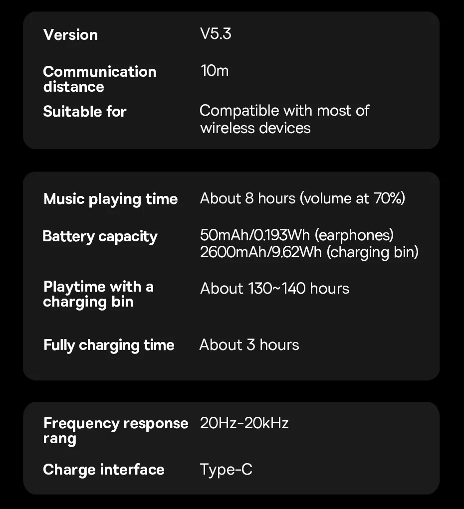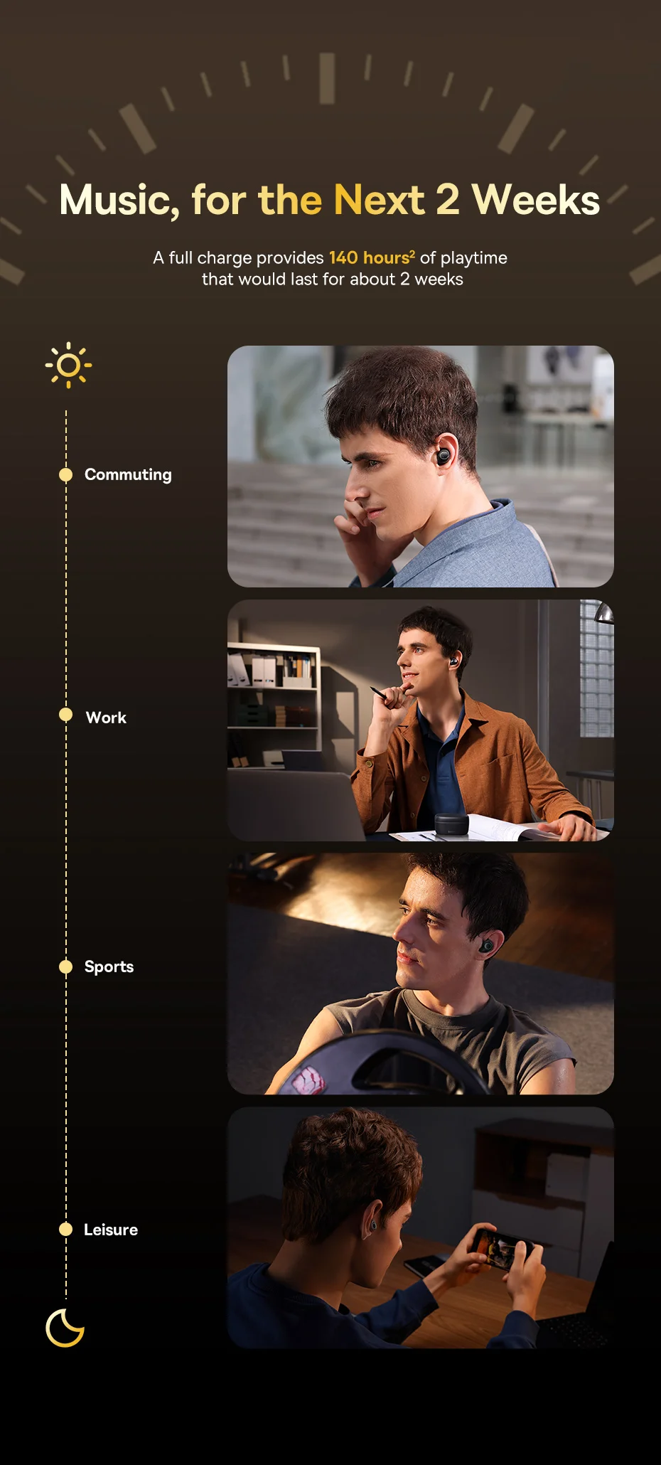 140 horas de Música: Escute sua playlists por até 140 horas de bateria: