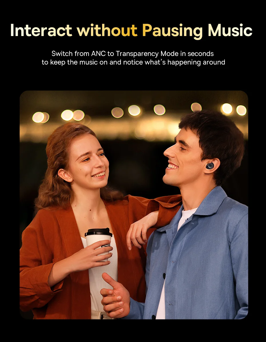 Interaja sem pausar a música: Mude do ANC para o modo transparência em segundos para manter a música tocando e ouvir o que acontece ao seu redor: