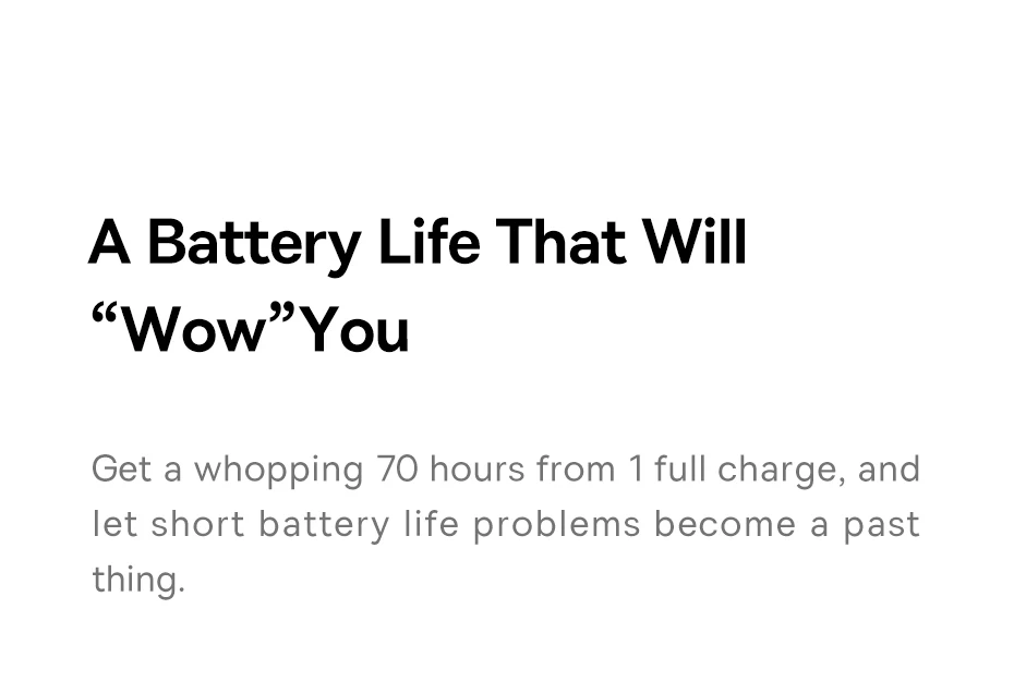 Bateria de Longa Duração: Os Fones Baseus possuem baterias de grande capacidade, funcionando até 70h sem o cancelamento de ruídos e 40h com o cancelamento de ruídos, sendo a opção perfeita para o seu dia a dia e para longas viagens:
