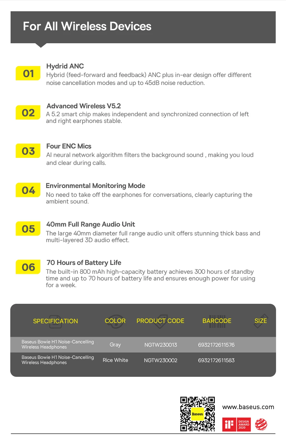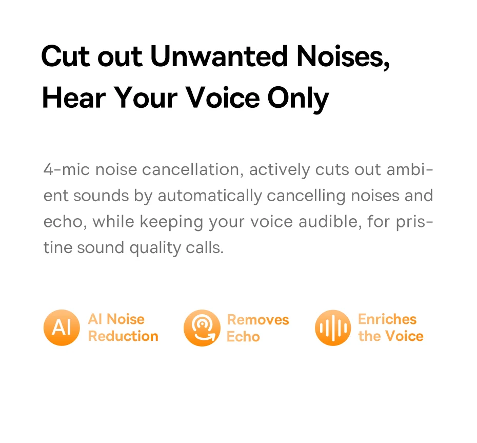 Cancelamento de Ruídos: Os Fones de Ouvido Sem Fio H1 ANC Baseus são equipados com cancelamento de ruídos ativo de dupla alimentação: